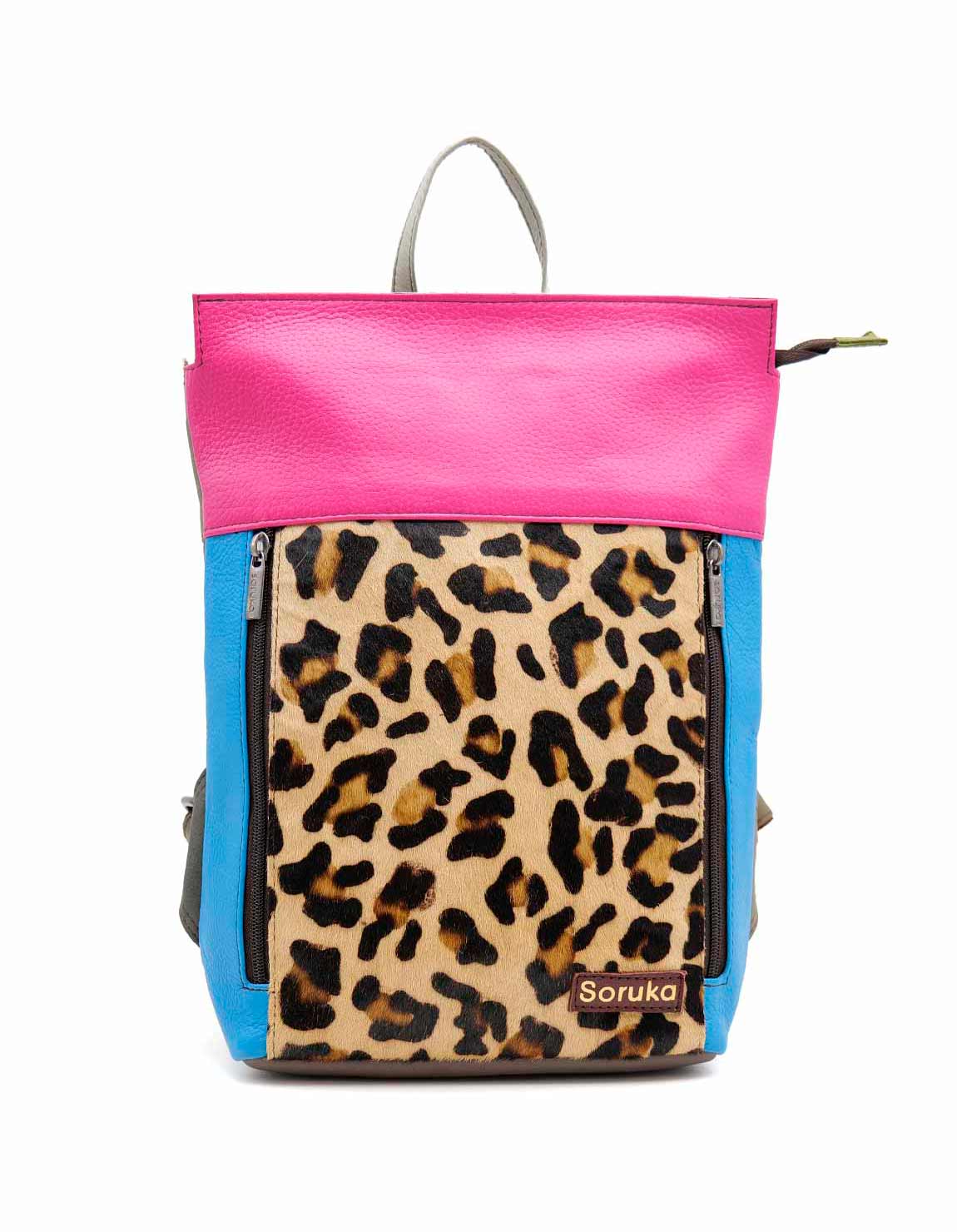 100% Recycled Leather Backpack. Beautiful Eco-friendly Handmade Backpack in Shades of Pink, Blue and with Animal Print