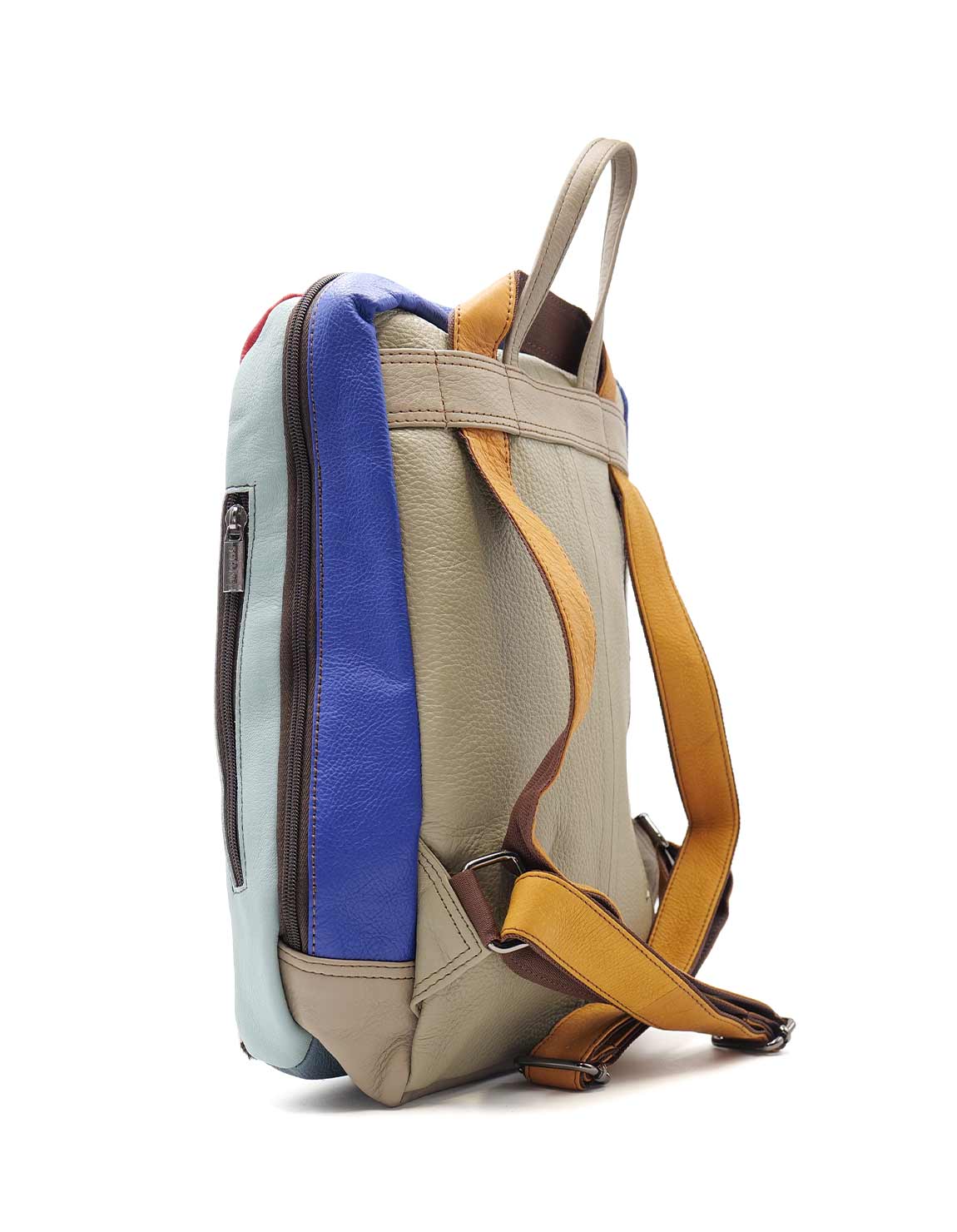 This large and colorful leather backpack will be your perfect accessory to carry everything you need. Perfect size to carry a tablet, notebook, or even a laptop, along with all your essentials or for a weekend trip. The straps are adjustable so it can be worn as a backpack or as a crossbody bag.