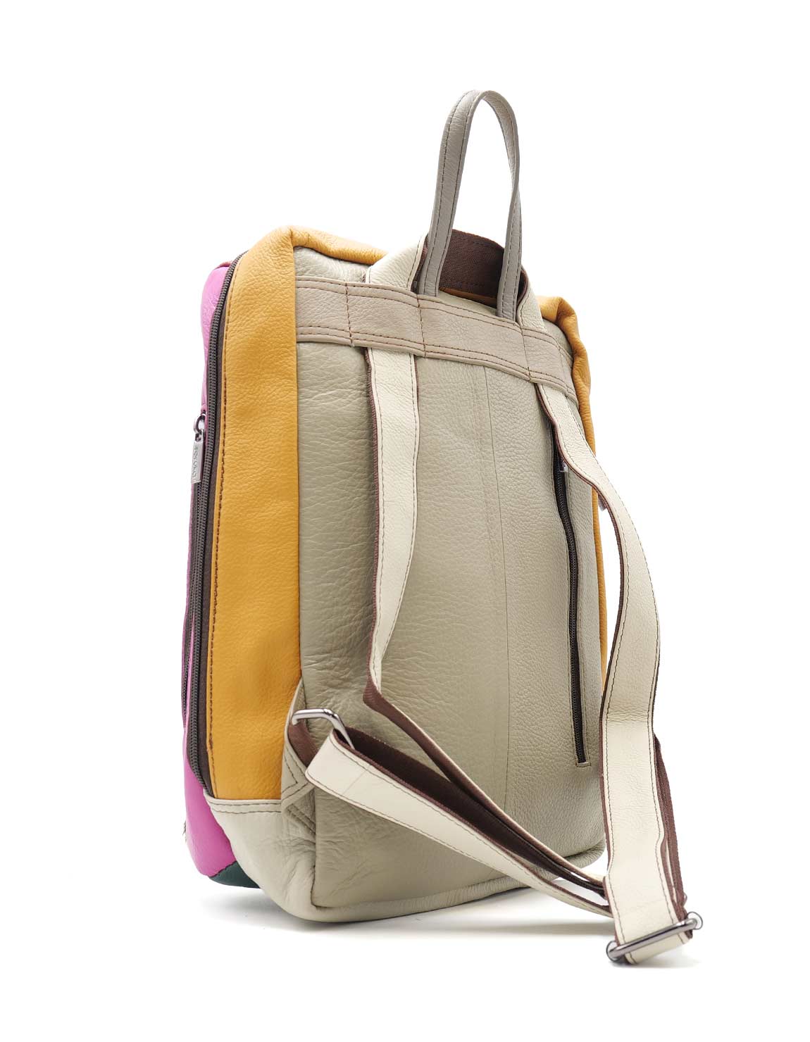 This large and colorful leather backpack will be your perfect accessory to carry everything you need. Perfect size to carry a tablet, notebook, or even a laptop, along with all your essentials or for a weekend trip. The straps are adjustable so it can be worn as a backpack or as a crossbody bag.