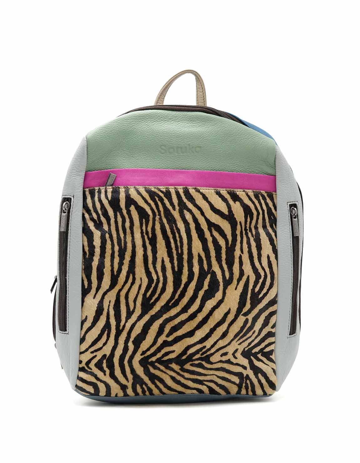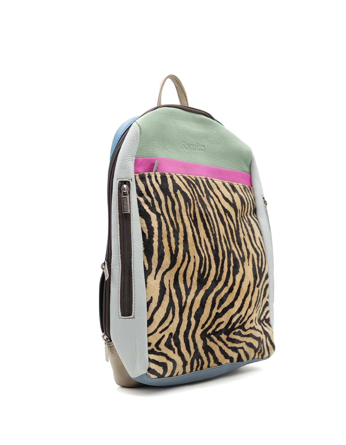 Large Leather Backpack with Animal Print · Laptop Size Backpack · Handmade Woman Shoulder Bag · Colorful Travel Backpack · Computer Bag · Convertible Backpack