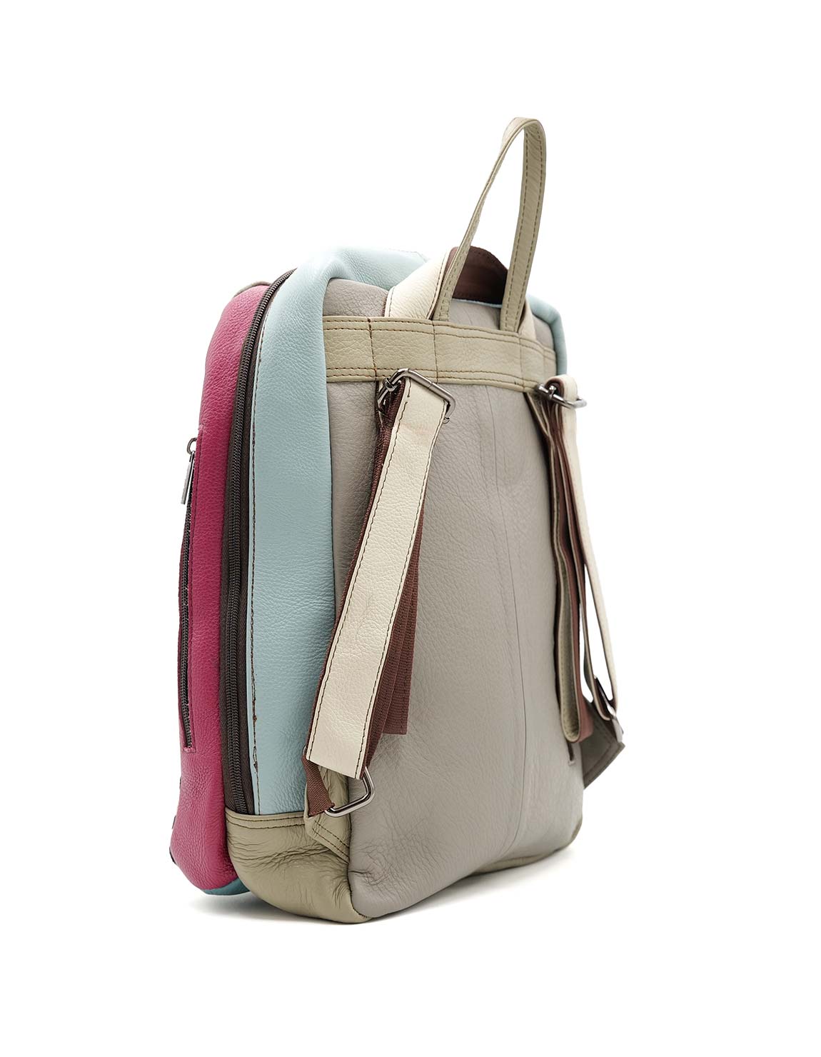 This large and colorful leather backpack will be your perfect accessory to carry everything you need. Perfect size to carry a tablet, notebook, or even a laptop, along with all your essentials or for a weekend trip. The straps are adjustable so it can be worn as a backpack or as a crossbody bag.