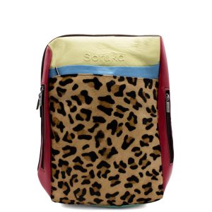 Large Leather Backpack with Animal Print · Laptop Size Backpack · Handmade Woman Shoulder Bag · Colorful Travel Backpack · Computer Bag · Convertible Backpack