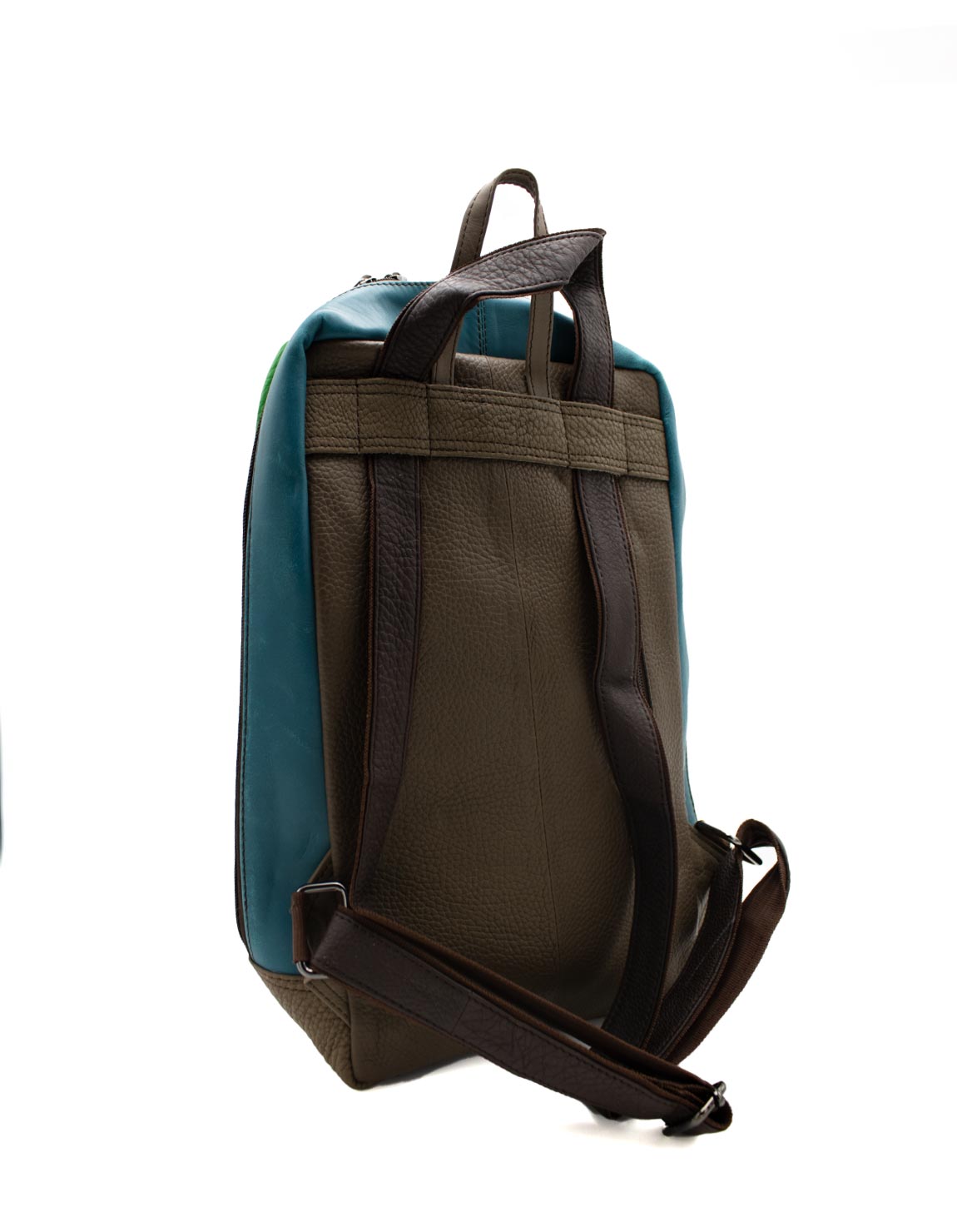 This large and colorful leather backpack will be your perfect accessory to carry everything you need. Perfect size to carry a tablet, notebook, or even a laptop, along with all your essentials or for a weekend trip. The straps are adjustable so it can be worn as a backpack or as a crossbody bag.