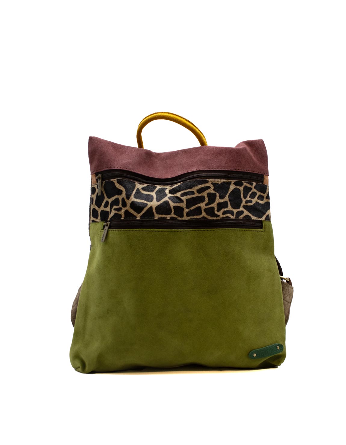Suede Leather Backpack with Animal Print · Women’s Backpack in Recycled Leather · Handmade Woman Handbag · Colorful Backpack