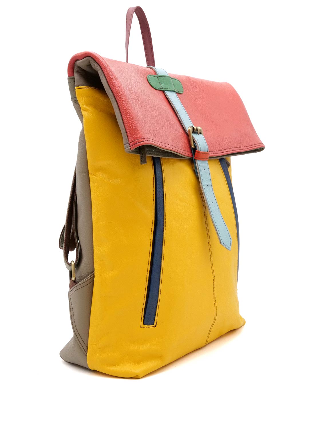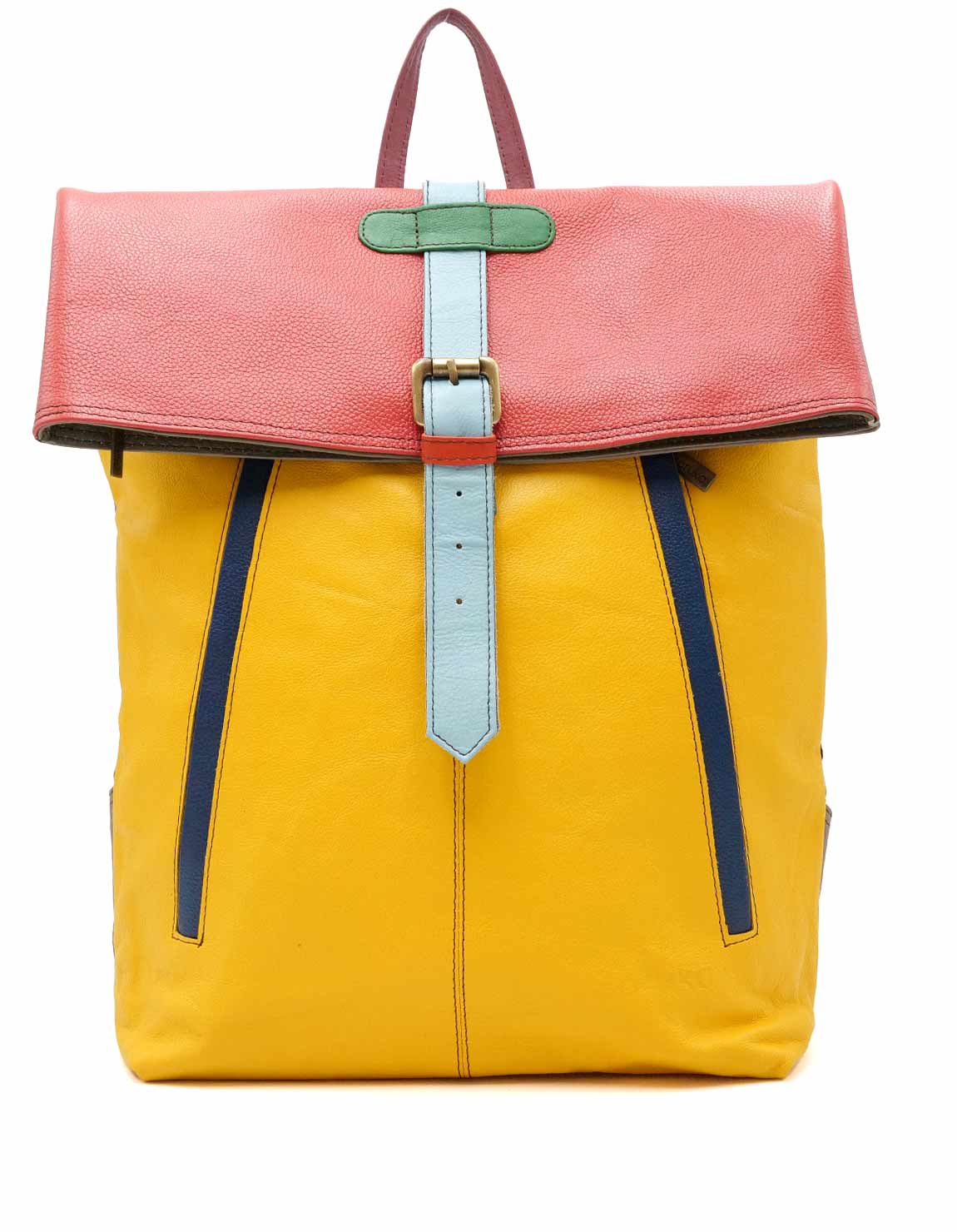100% Upcycled Leather Backpack. Multicolor Eco friendly Handmade Backpack in Shades of Yellow and Red.