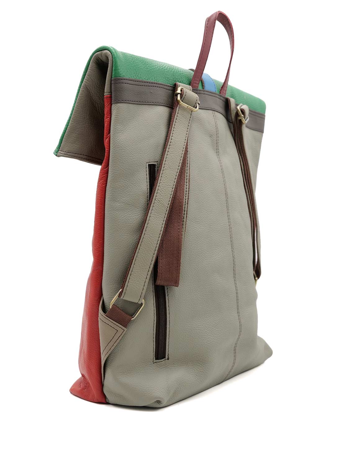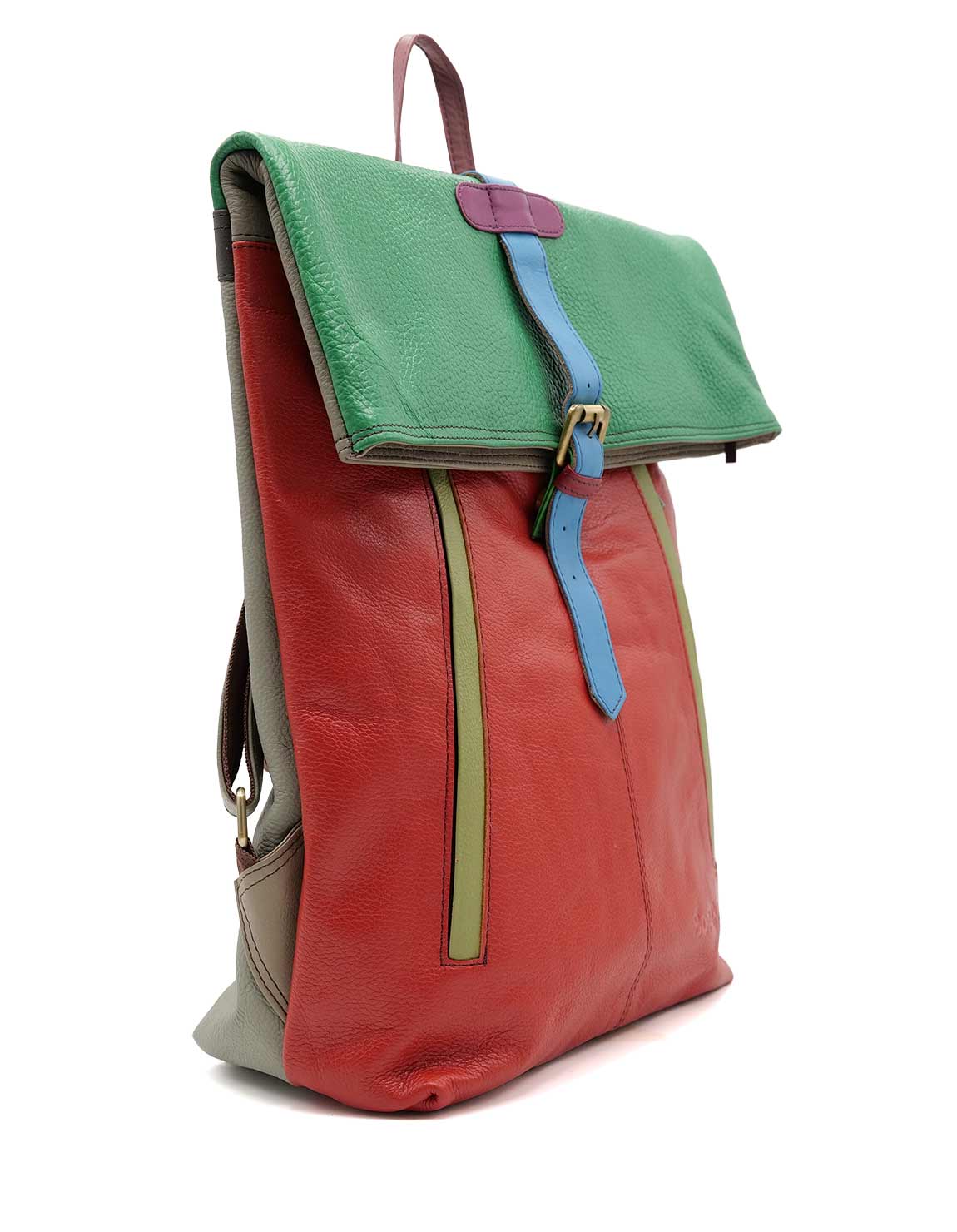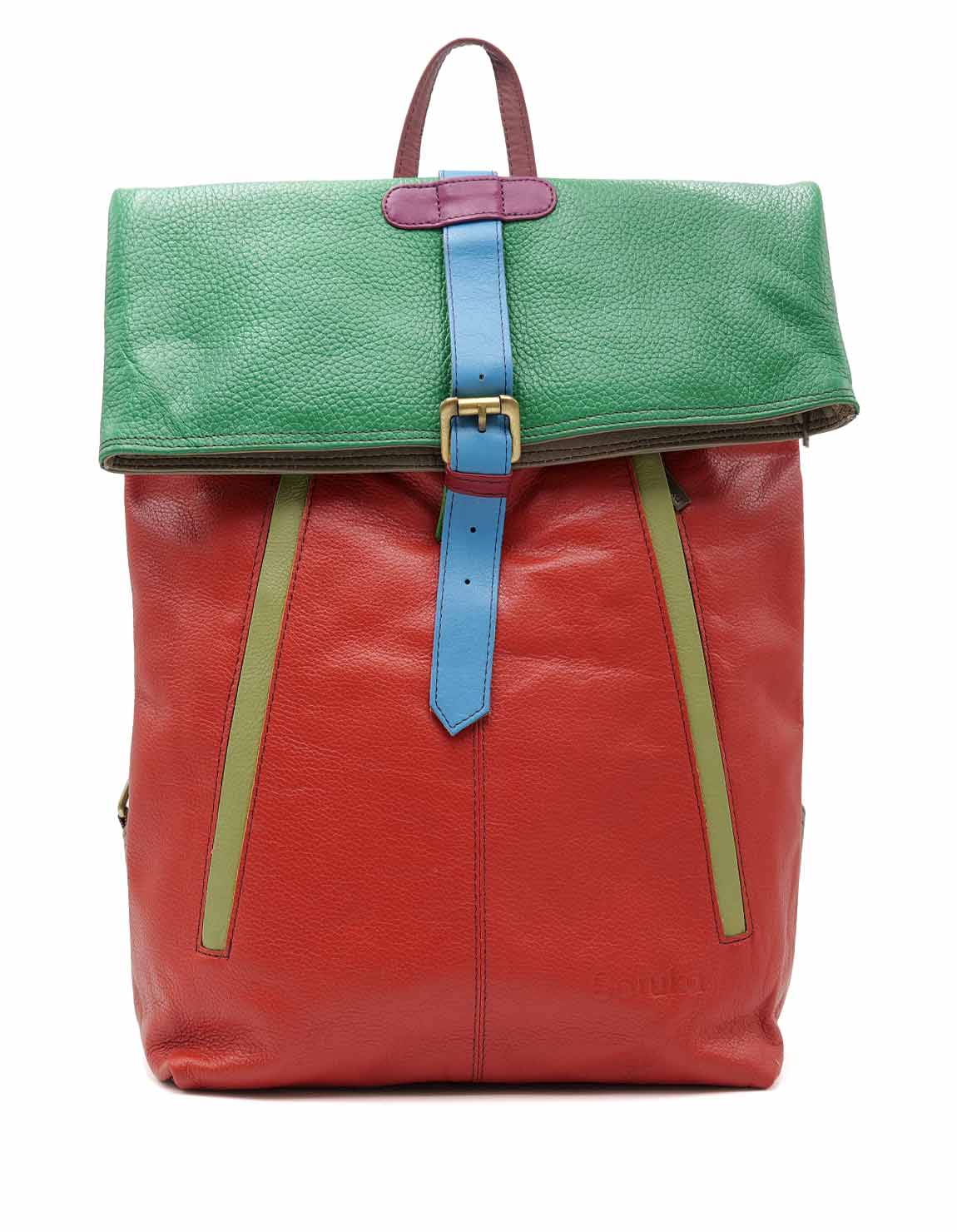 100% Upcycled Leather Backpack. Multicolor Eco friendly Handmade Backpack in Shades of Red and Green.