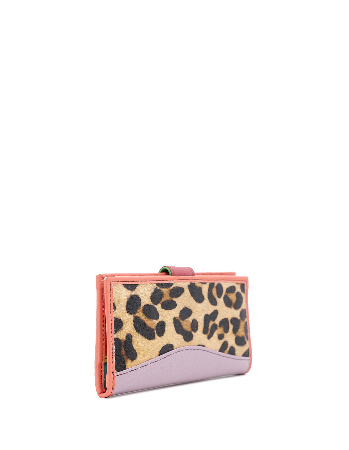 Authentic Leather Handcrafted Wallet with Animal Print and Pink Body. Beautiful Eco-Friendly Wallet made with Recycled Leather.
