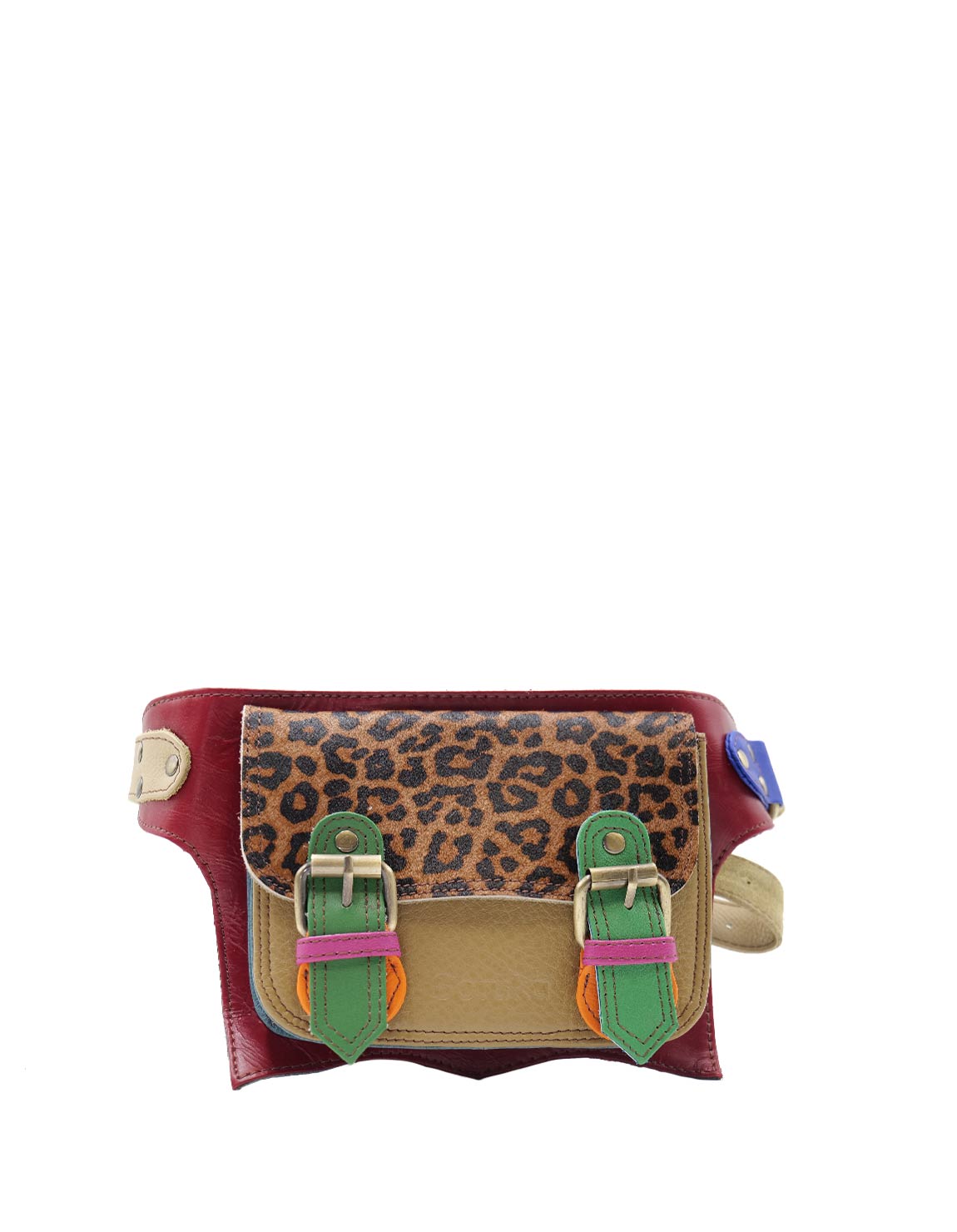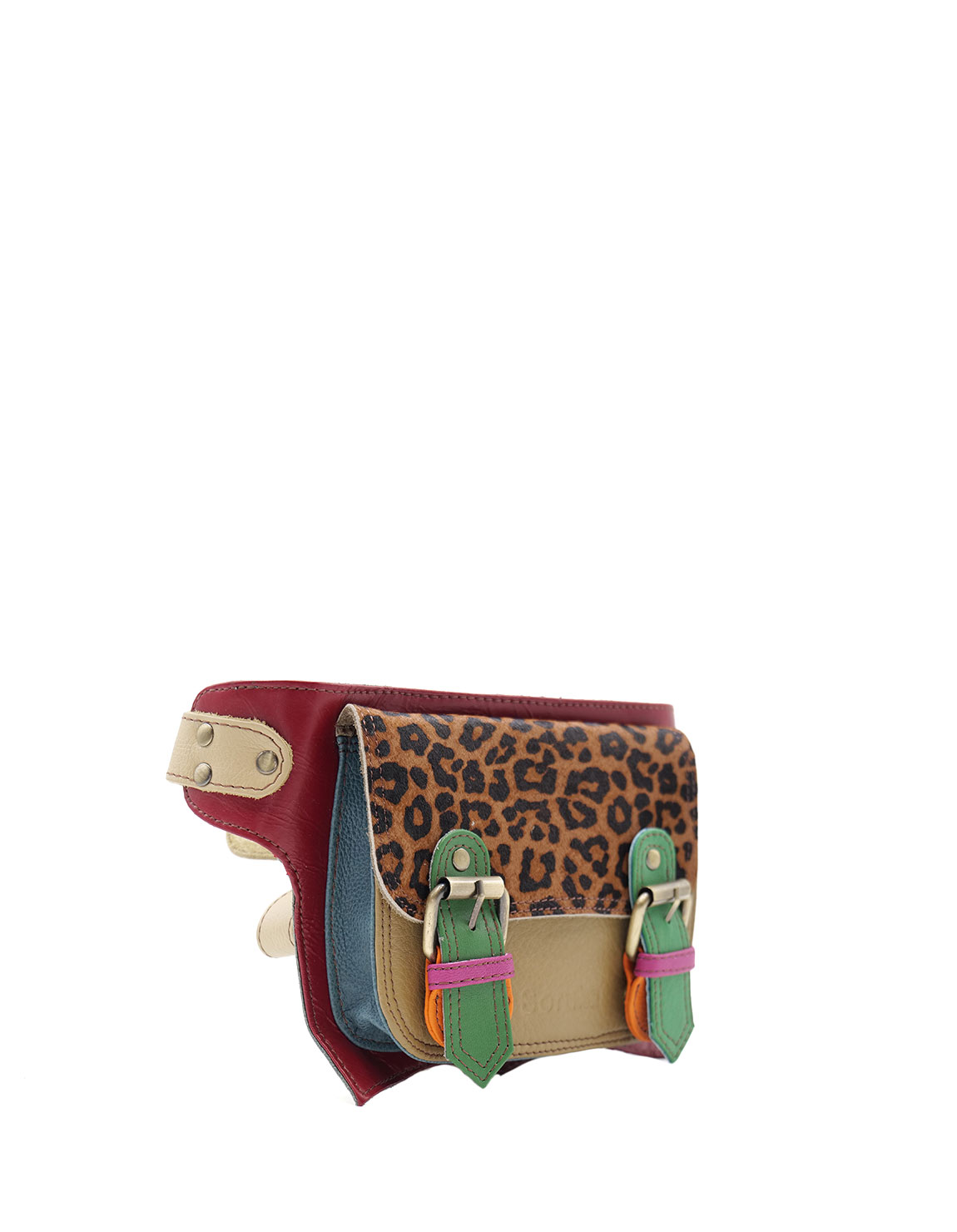Authentic Leather Belt Bag in Shades of Olive Green, Burgundy and with Animal print. Beautiful Eco-Friendly Sling Bag made with Recycled Leather.