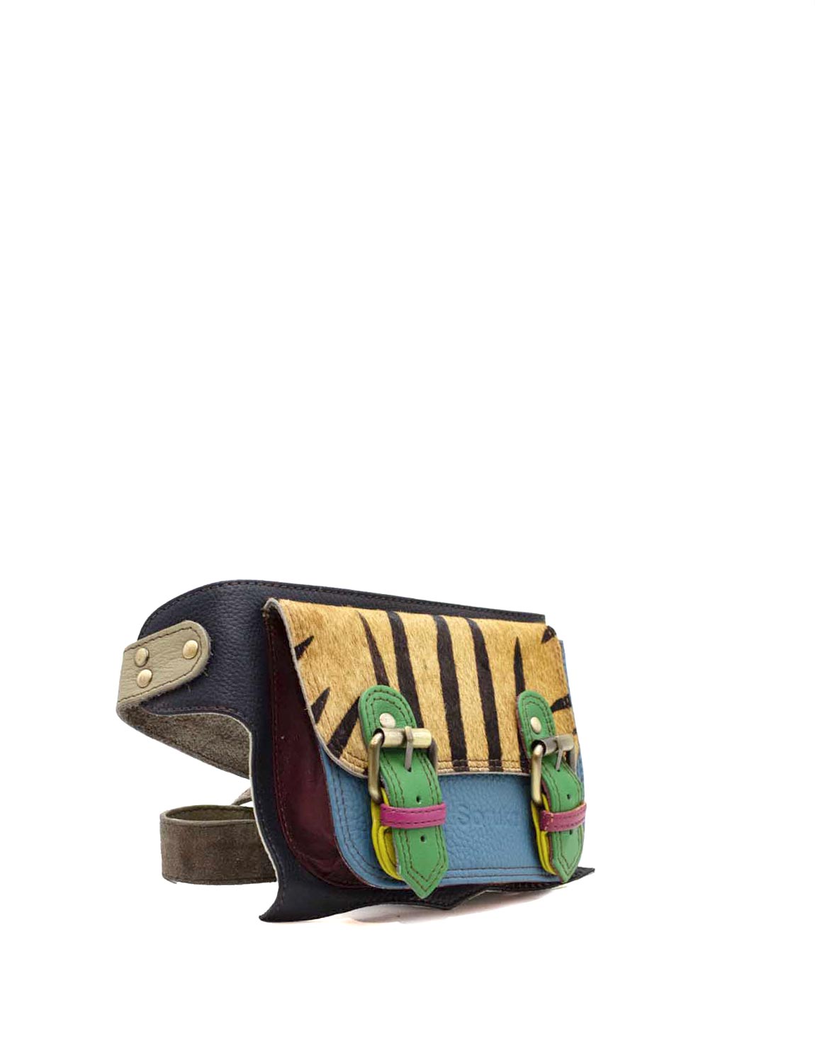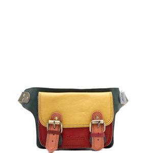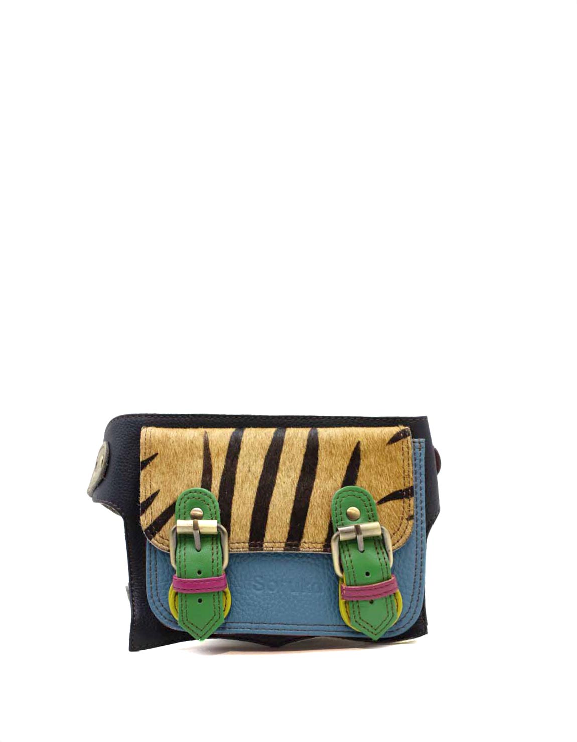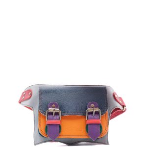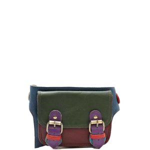 This colorful belt bag / fanny pack is unique and complements all types of looks. Wear it also as a sling bag! It comes with a long adjustable strap to use it on the waist area as a belt bag. It fastens with two with magnetic clasps underneath the buckles and also comes with a zipper in the back.