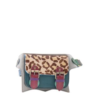 Authentic Leather Belt Bag in Shades of Light Blue, Dark Blue and with Animal print. Beautiful Eco-Friendly Sling Bag made with Recycled Leather.