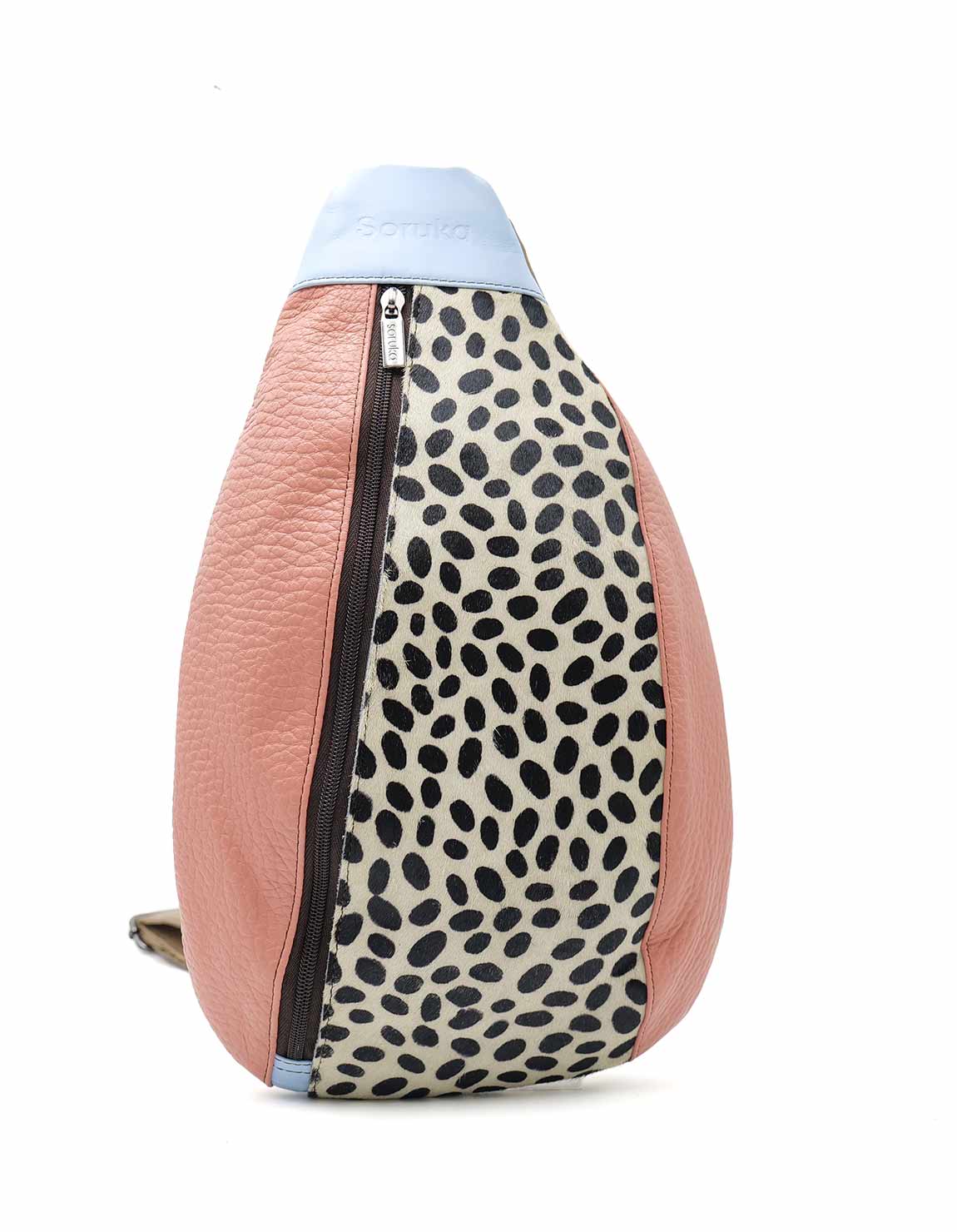 Authentic Leather Sling Bag in Shades of Pink and with Animal Print. Beautiful Eco-Friendly Crossbody Bag made with Recycled Leather.