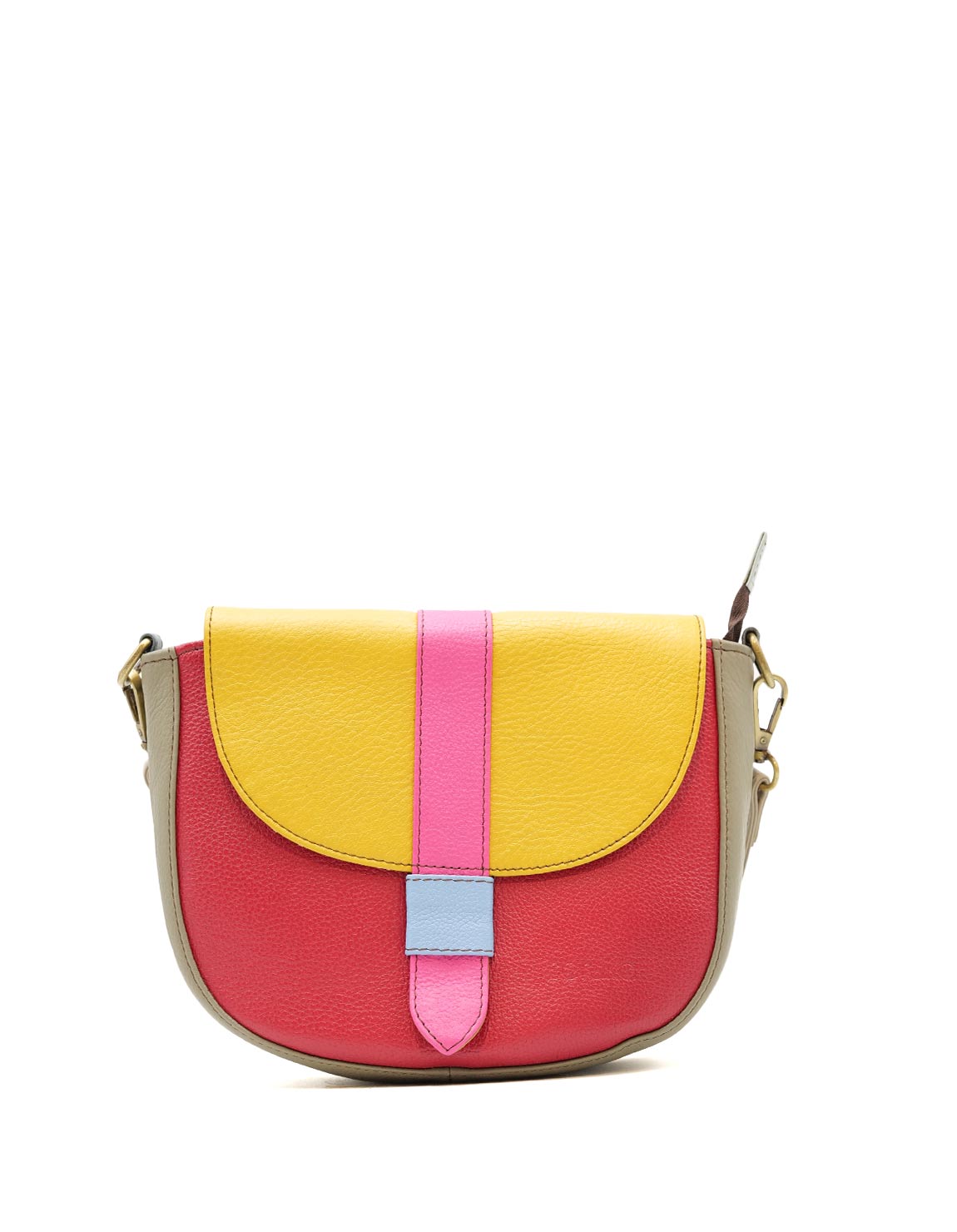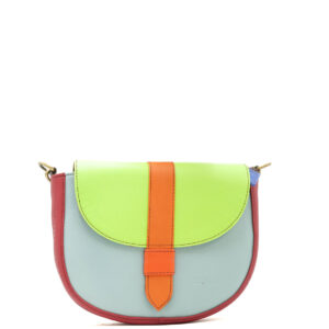 This colorful medium saddle-shaped bag is unique and will definitely make a statement when you wear it. Perfect size to fit all your everyday items.