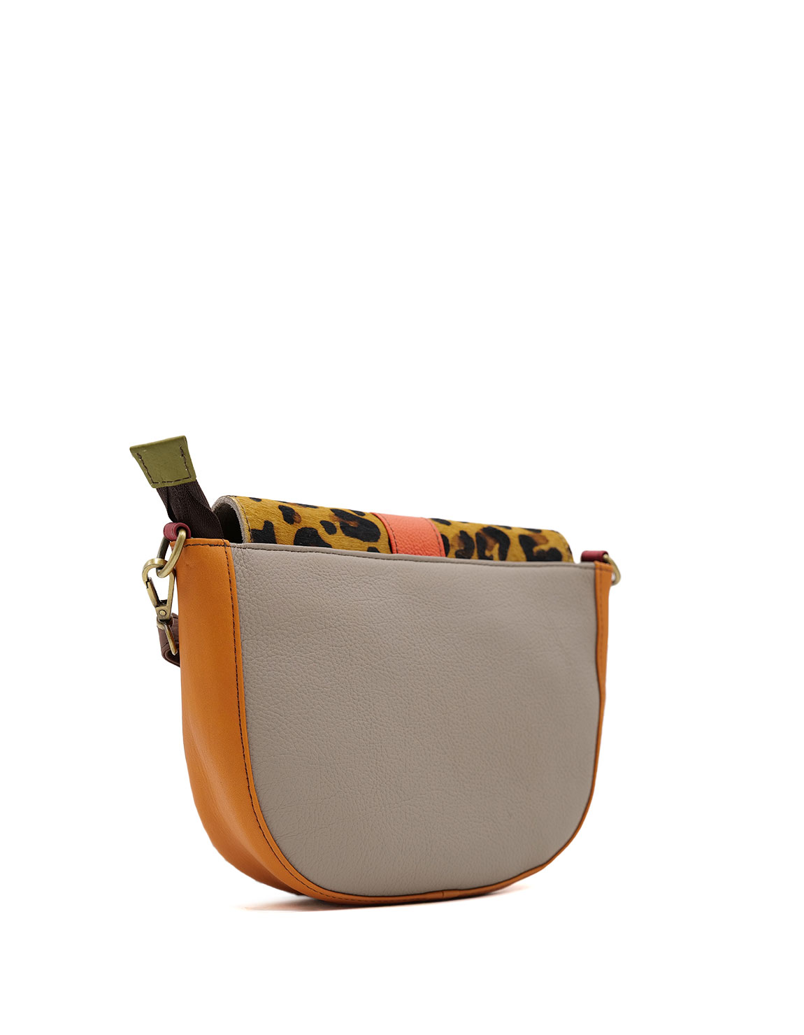 This colorful medium saddle-shaped bag is unique and will definitely make a statement when you wear it. Perfect size to fit all your everyday items.
