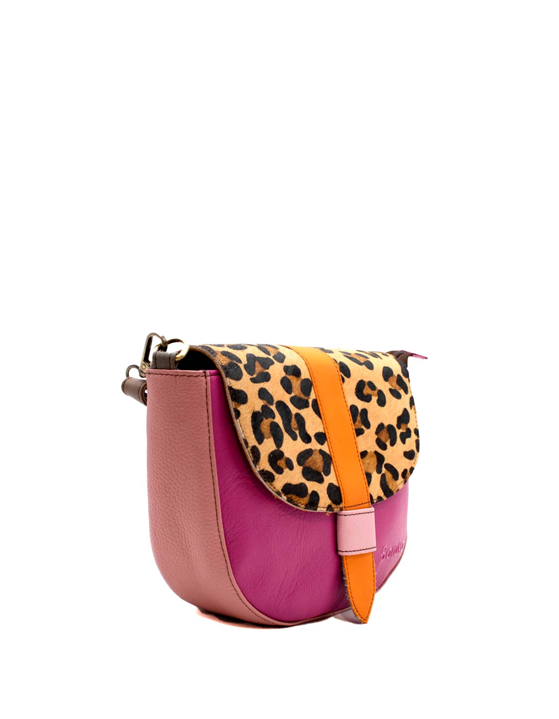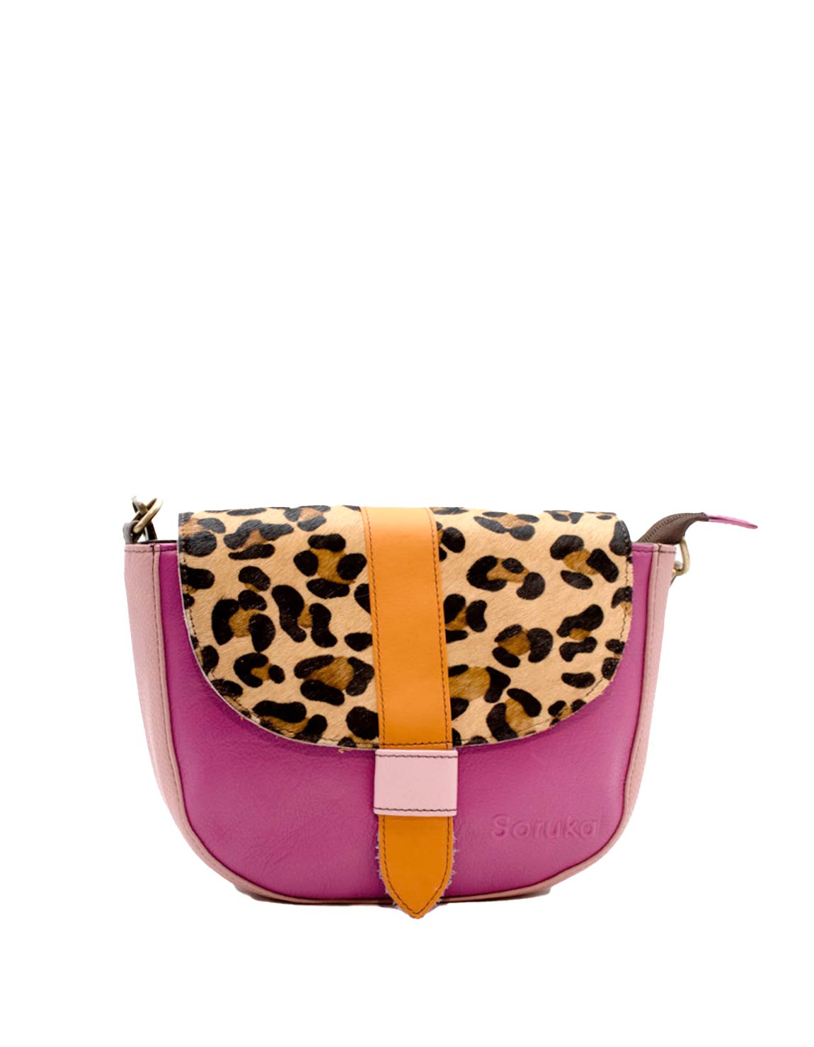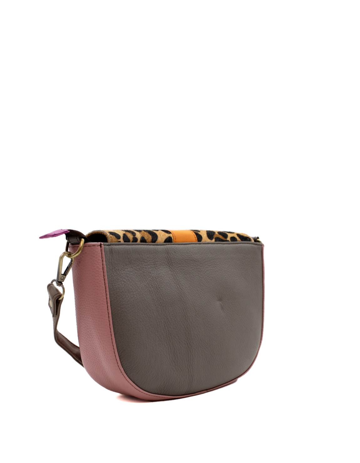 Beautiful 100% Recycled Leather Crossbody Shoulder Bag. Eco-friendly Handmade Bag in Shades of Pink and with Animal print flap.