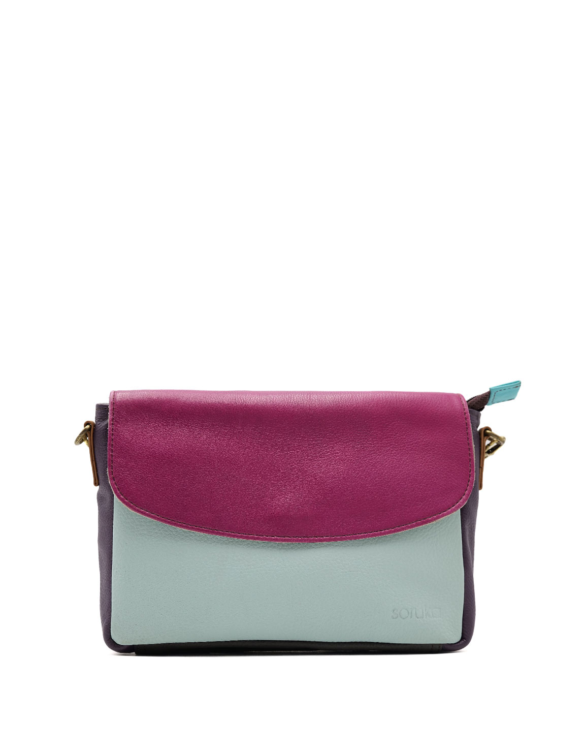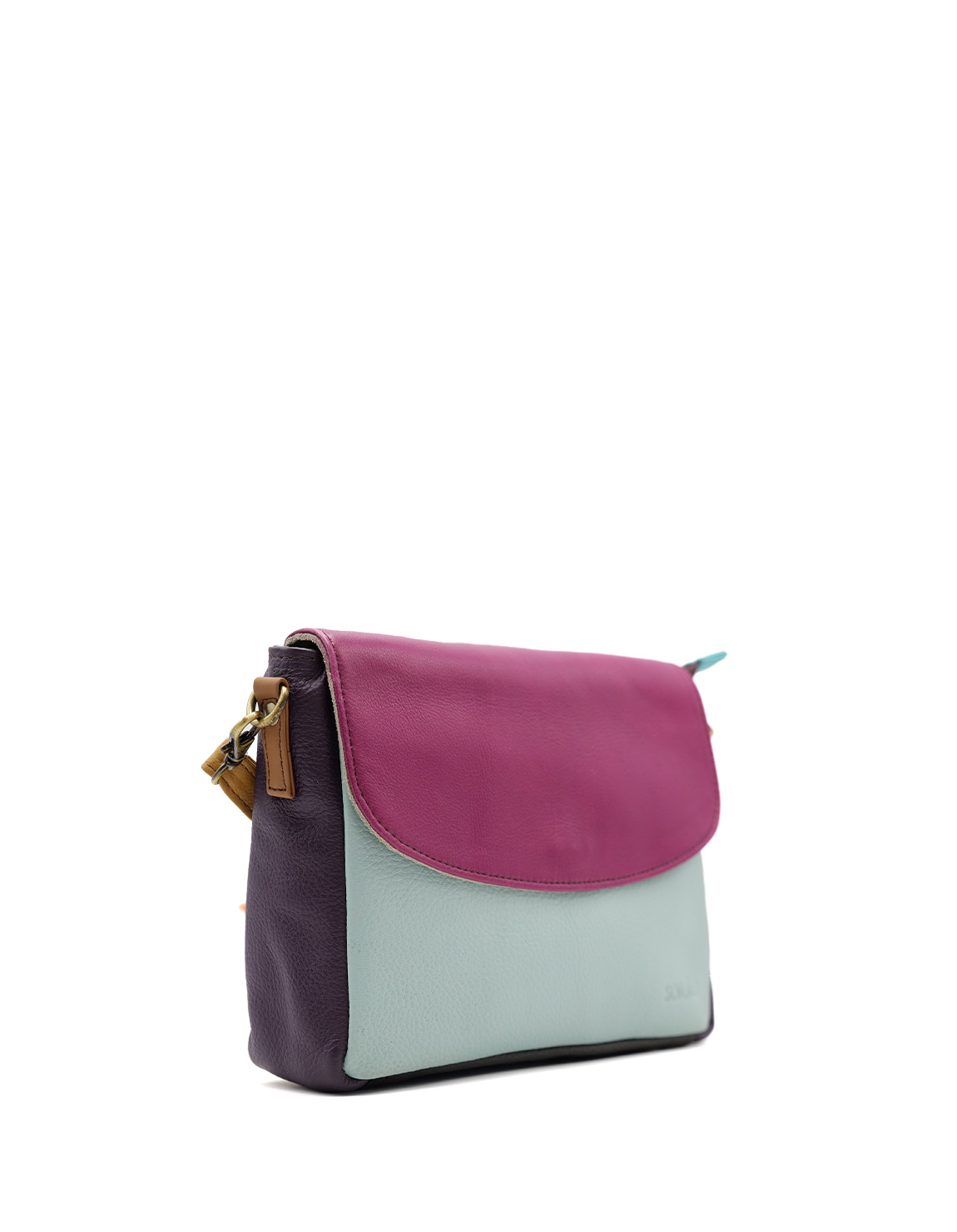 Beautiful 100% Recycled Leather Handbag. Medium Crossbody Bag in shades of Light Blue and Purple. Eco-friendly Handmade Purse with Adjustable Strap