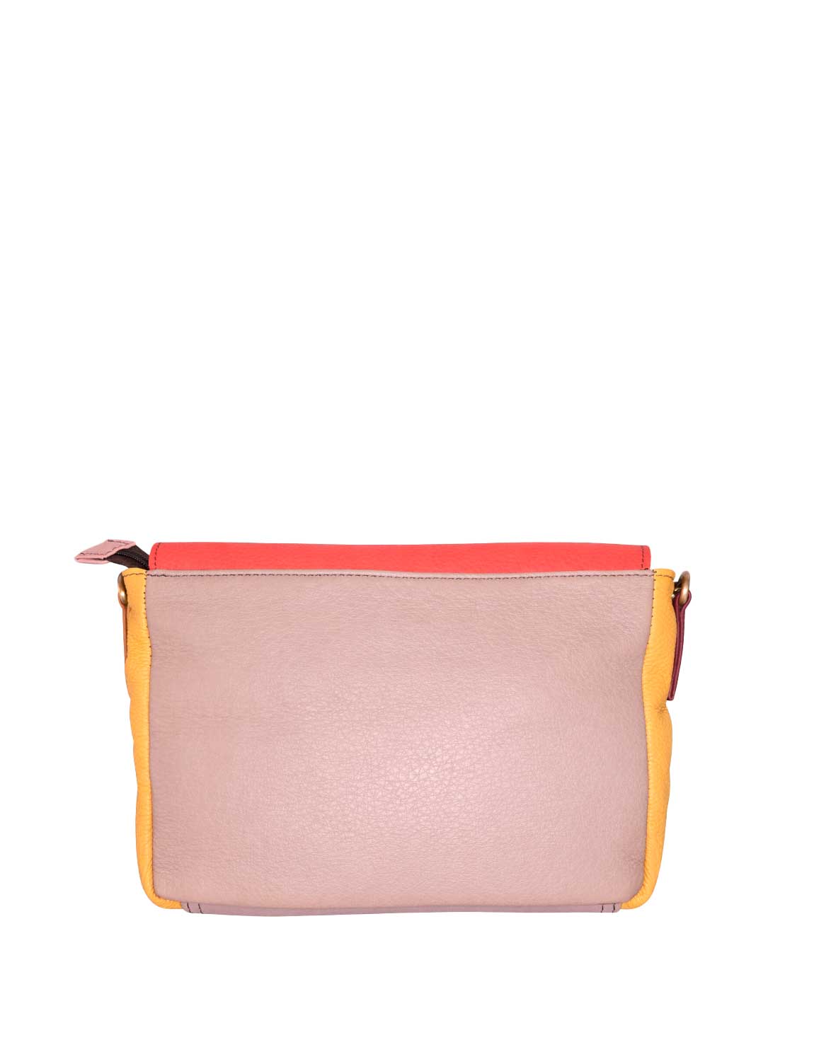 Beautiful 100% Recycled Leather Handbag. Small Crossbody Bag with Orange flap and Pink color body. Eco-friendly Handmade Purse with Adjustable Strap