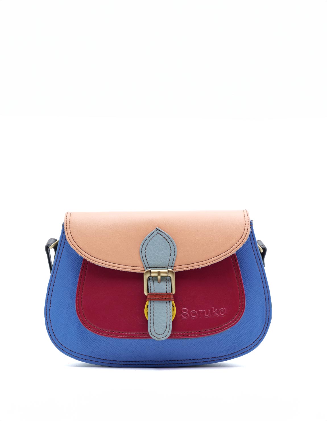 This colorful saddle-shaped bag is unique and compliments all types of looks. Great size to store all your essentials! It comes with three internal compartments, one with a zipper, a smaller front compartment with a magnetic stud and an outside zipper. Additional zipper pocket inside the main compartment