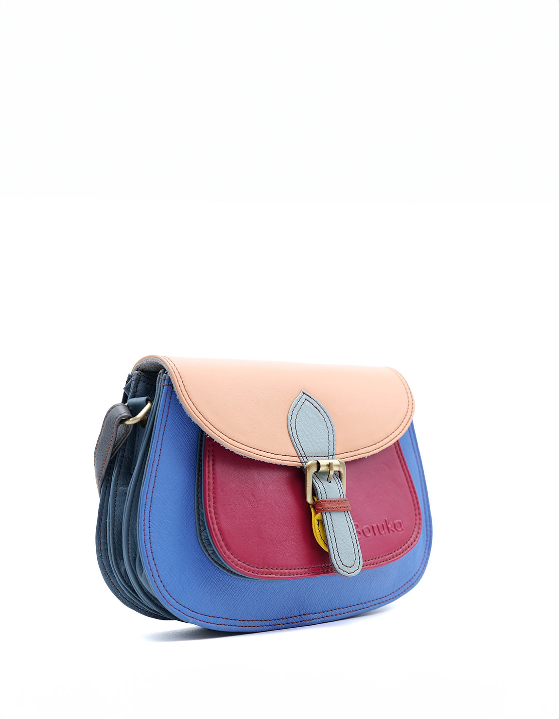 Beautiful 100% Recycled Leather Shoulder Bag and in Shades of Blue, Burgundy and Light Pink. Small Eco-friendly Crossbody Handmade Bag. Adjustable shoulder strap also in leather.