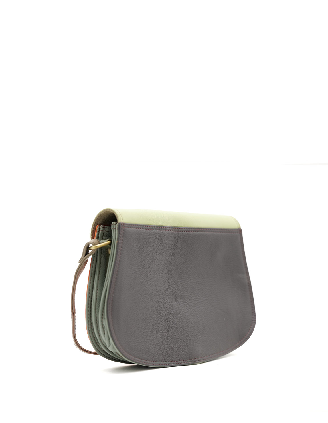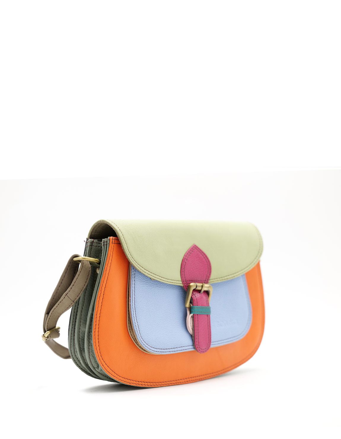 Beautiful 100% Recycled Leather Shoulder Bag and in Shades of Orange and Light Green. Small Eco-friendly Crossbody Handmade Bag. Adjustable shoulder strap also in leather.