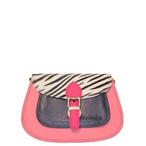 This colorful saddle-shaped bag is unique and compliments all types of looks. Great size to store all your essentials! It comes with three internal compartments, one with a zipper, a smaller front compartment with a magnetic stud and an outside zipper. Additional zipper pocket inside the main compartment
