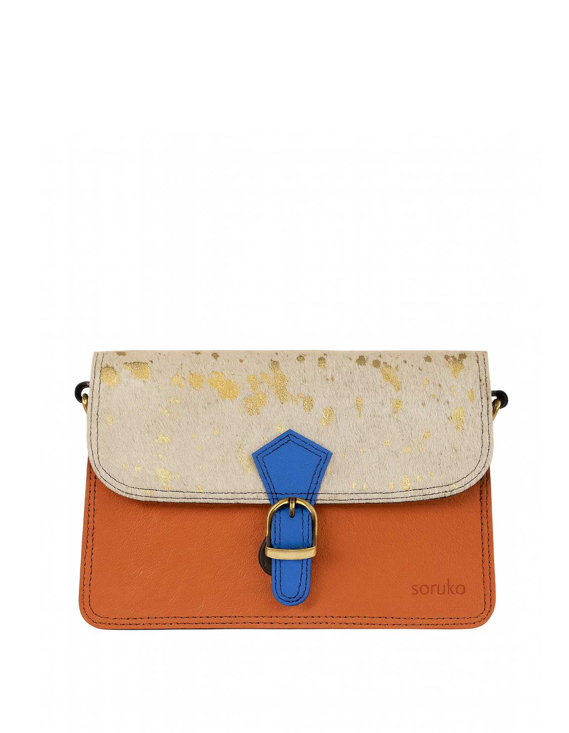 Beautiful 100% Recycled Leather Shoulder Bag in Orange Color Body and Animal Print color Flap. Medium Eco Friendly Crossbody Handmade Bag. Adjustable shoulder strap also in leather.