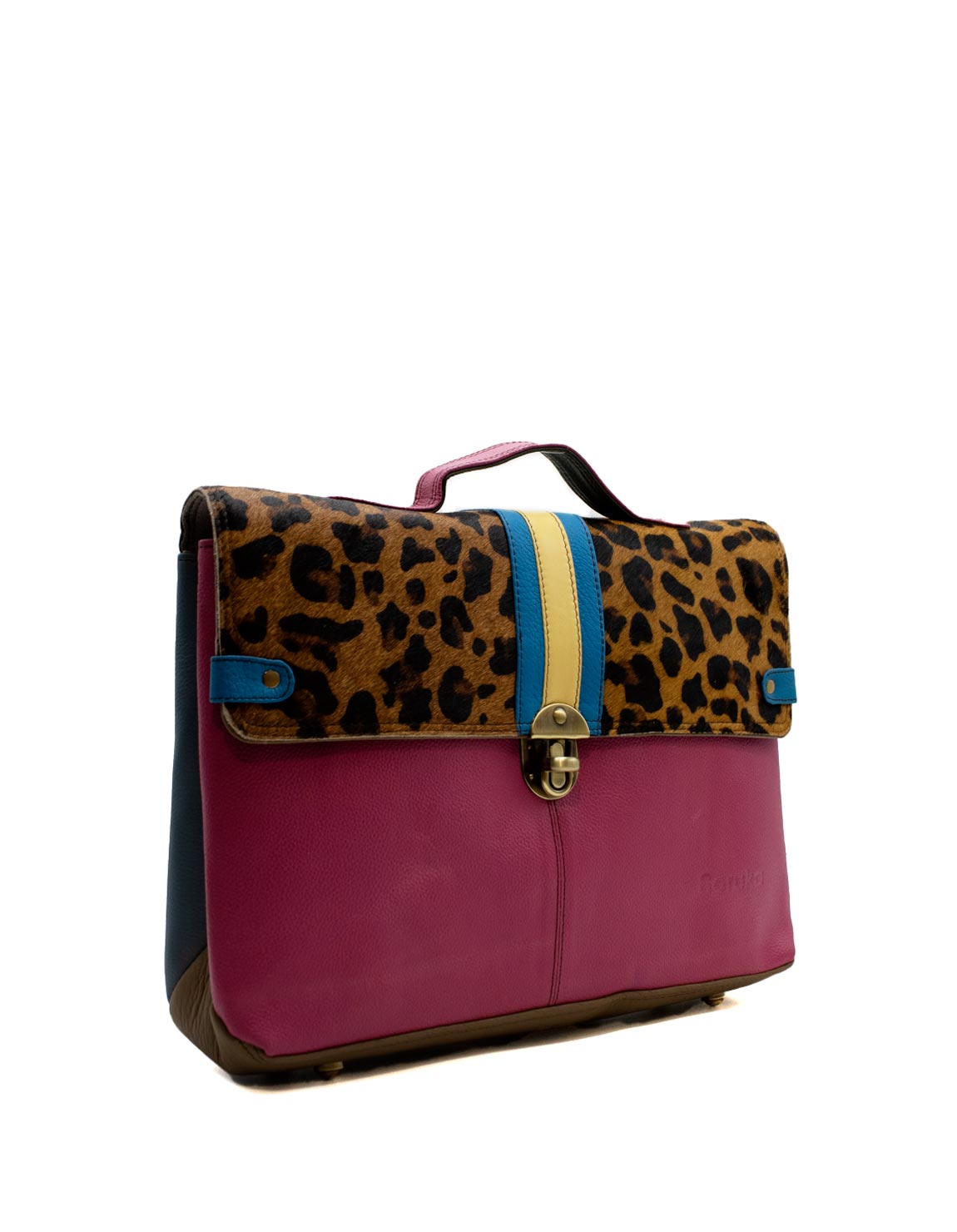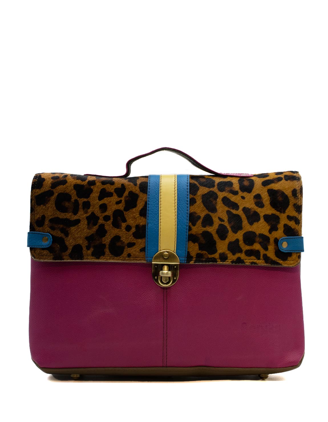 Make a bold statement with this colorful satchel bag, perfect for carrying all your essentials, including laptops or notebooks. Its spacious main compartment is secured with two magnetic closures, ensuring your belongings stay safe while you’re on the move.