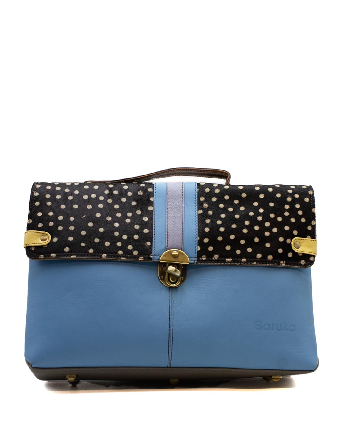 Make a bold statement with this colorful satchel bag, perfect for carrying all your essentials, including laptops or notebooks. Its spacious main compartment is secured with two magnetic closures, ensuring your belongings stay safe while you’re on the move.