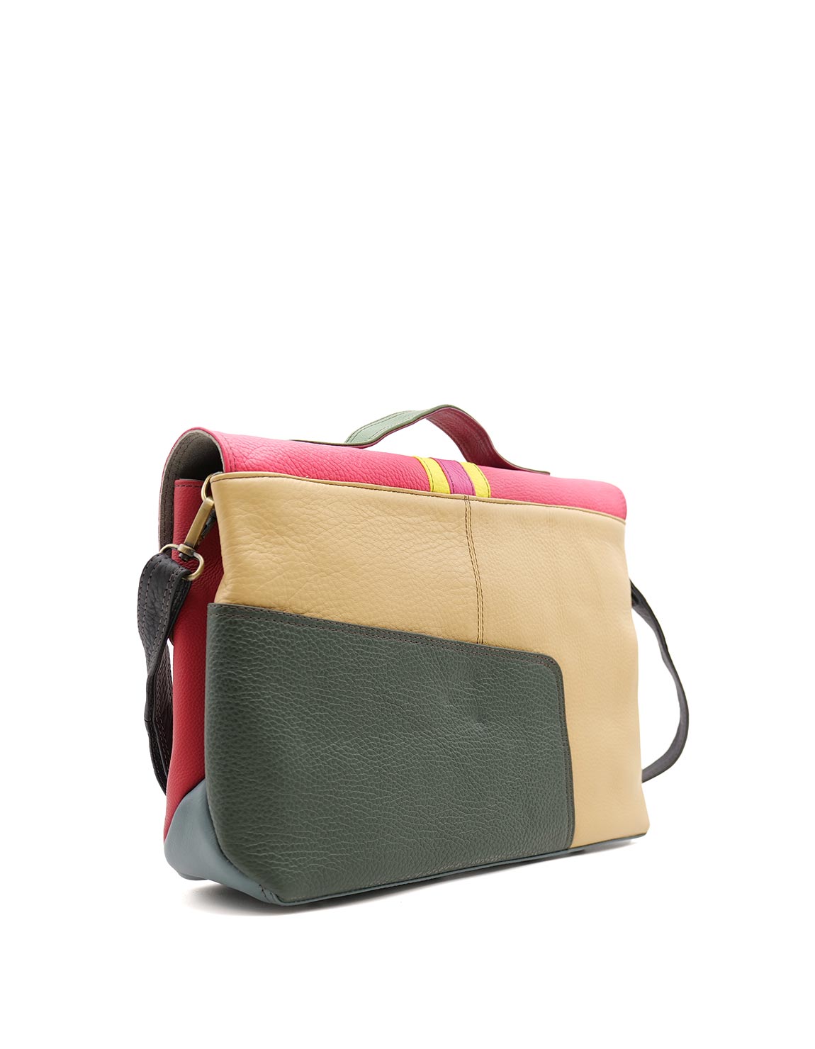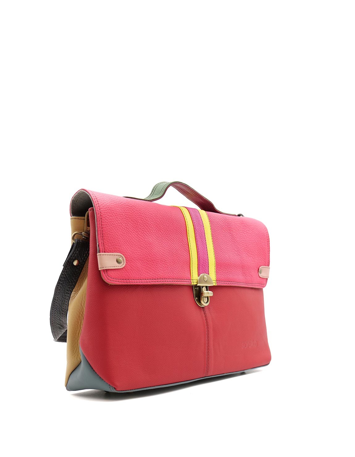 Make a bold statement with this colorful satchel bag, perfect for carrying all your essentials, including laptops or notebooks. Its spacious main compartment is secured with two magnetic closures, ensuring your belongings stay safe while you’re on the move.