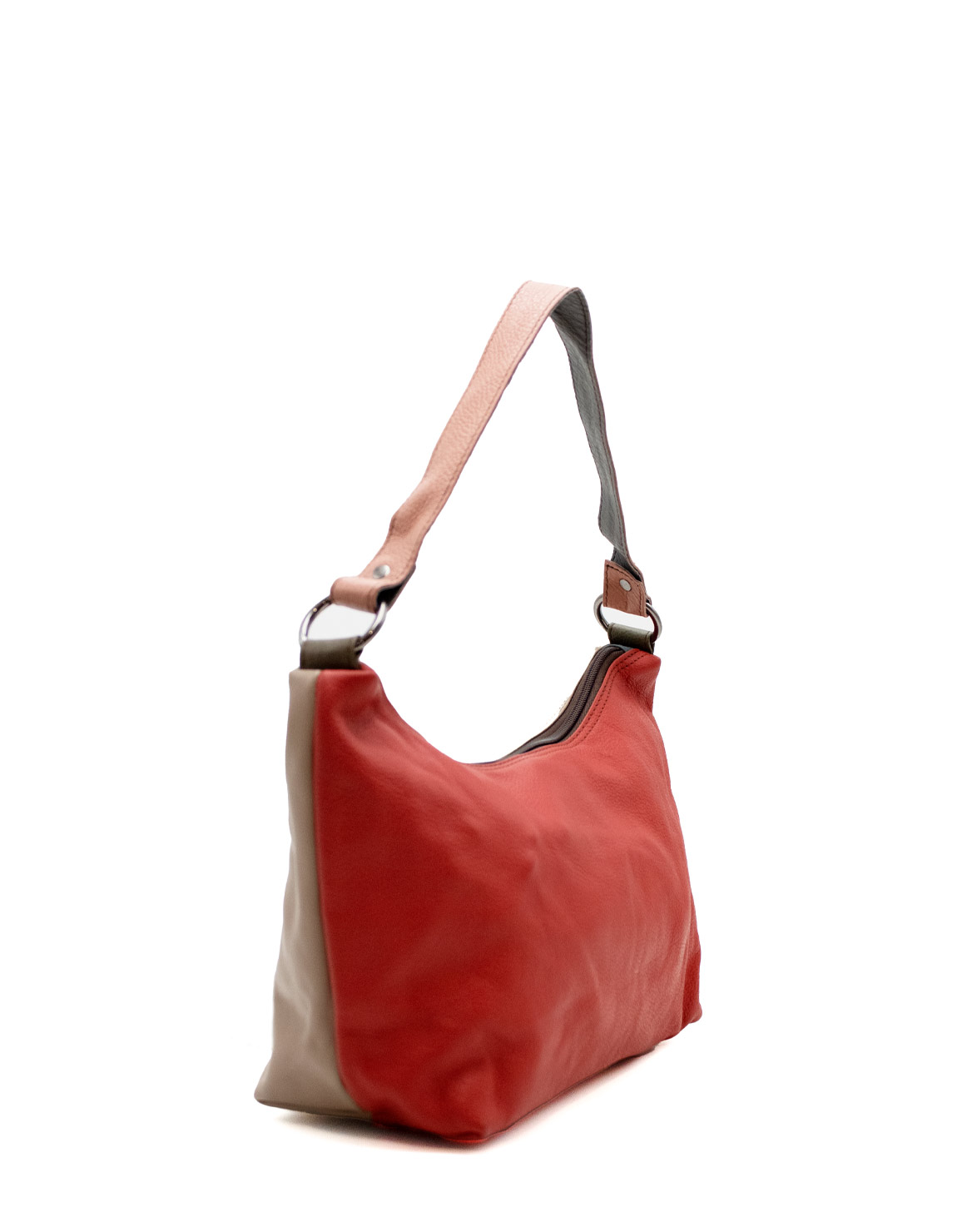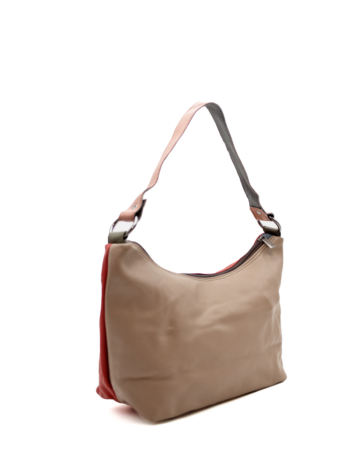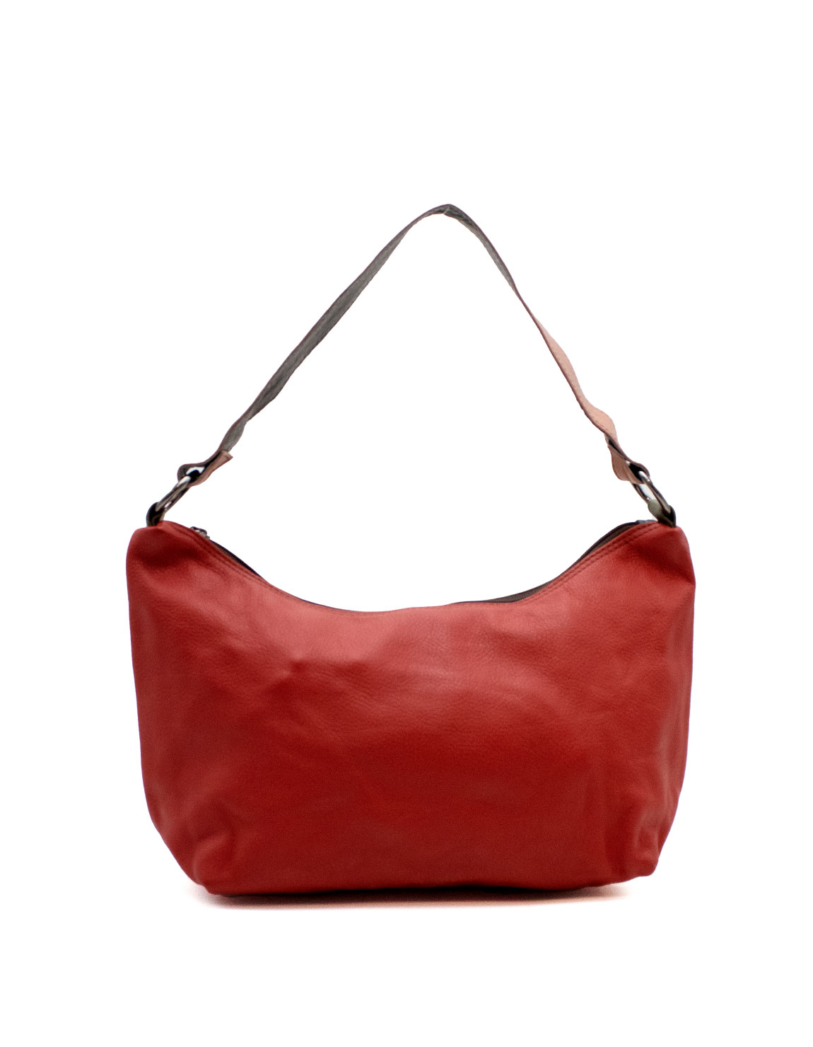 100% Recycled Leather Hobo-stye Shoulder Bag. Enjoy two looks in one bag: with one side in Red shades and the other in Brown Beautiful eco-friendly handmade bag.