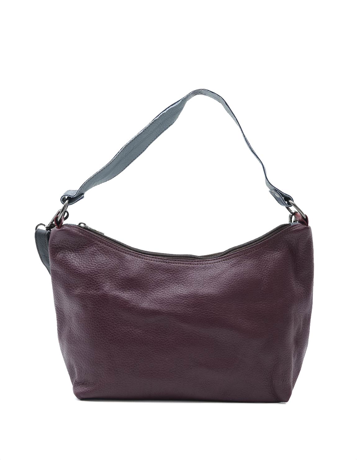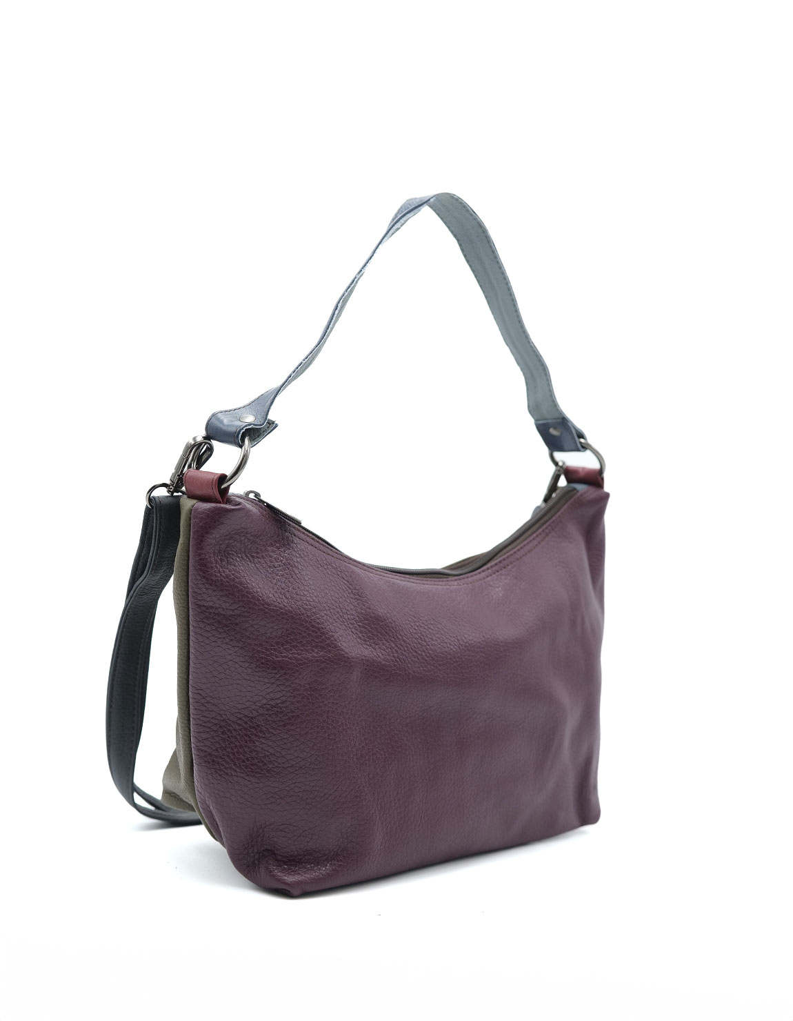 100% Recycled Leather Hobo-stye Shoulder Bag. Enjoy two looks in one bag: with one side in Purple shades and the other in Dark Green. Beautiful eco-friendly handmade bag.