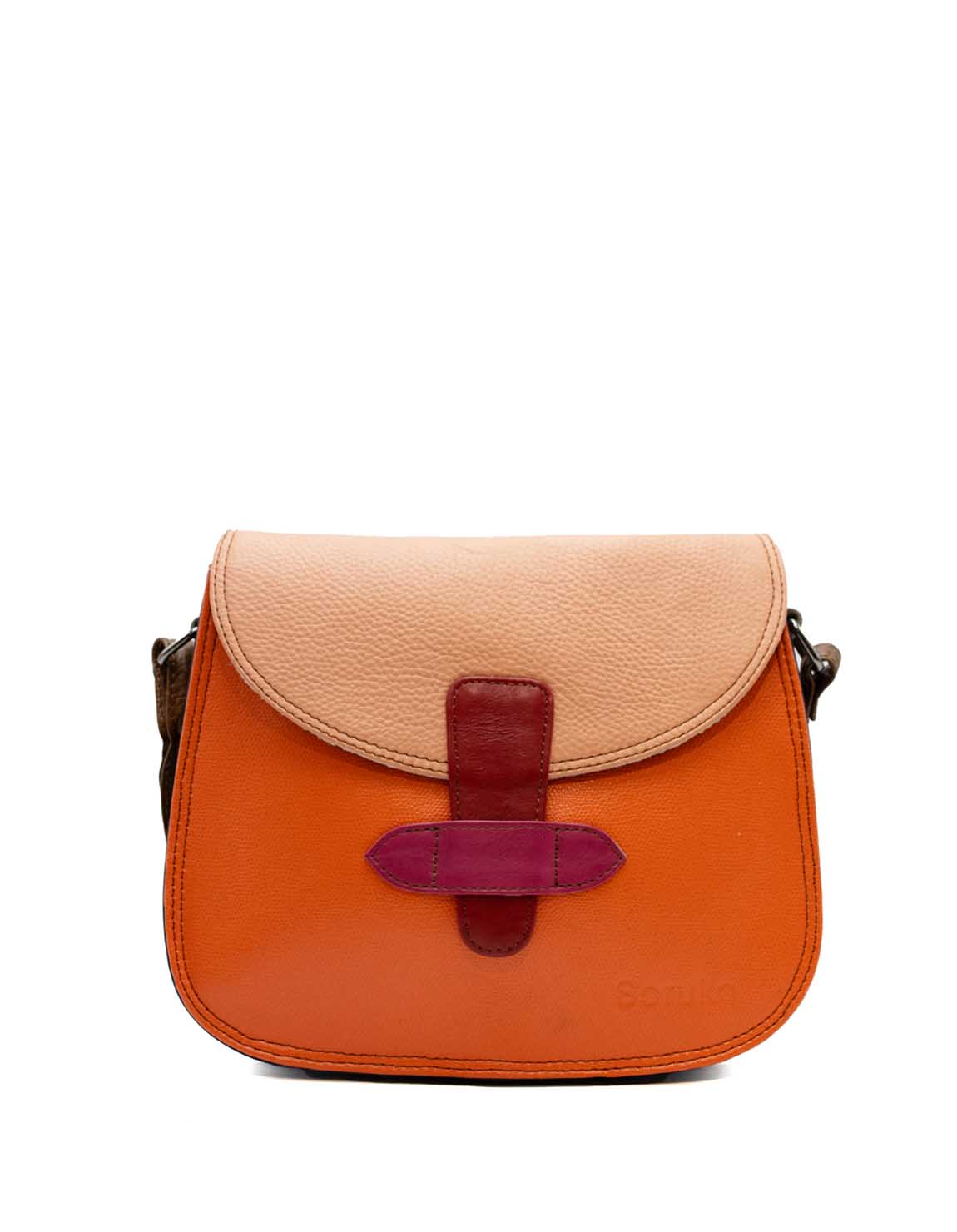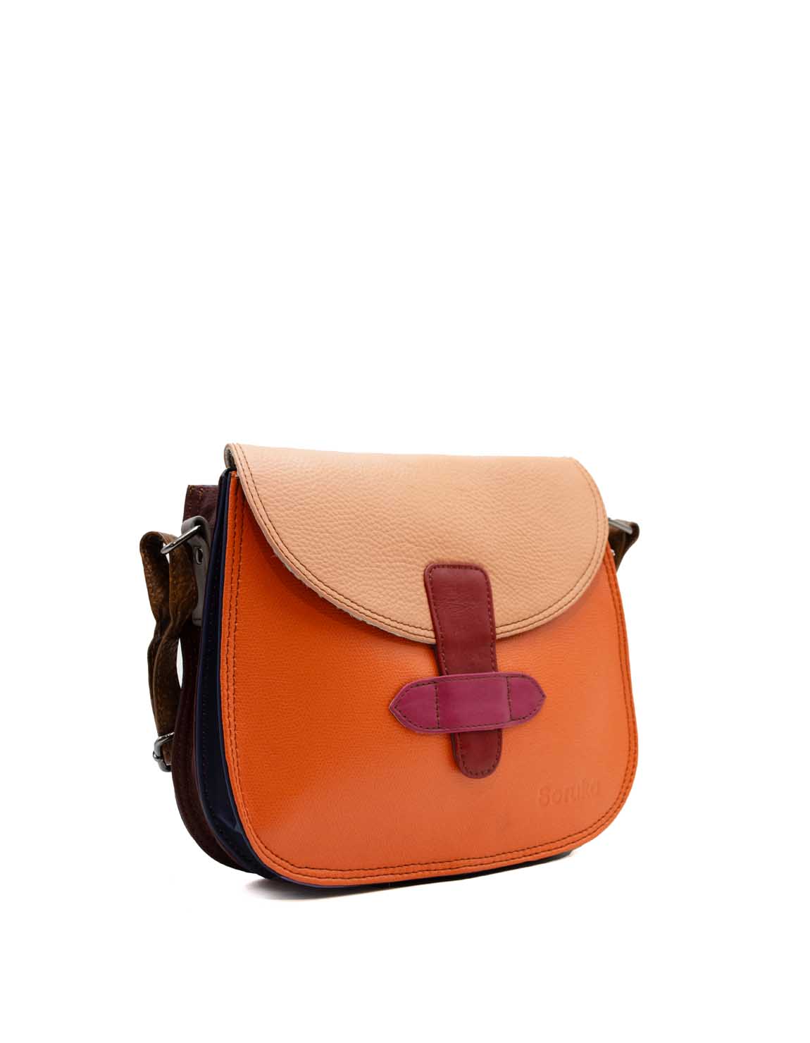 This medium saddle-shaped bag comes with two large main compartments, fasten by two zippers on each side of the flap. Is the perfect size to store all your essentials. Additional zipper pocket in one of the main compartments. The bag also comes with an adjustable shoulder/cross-body strap.