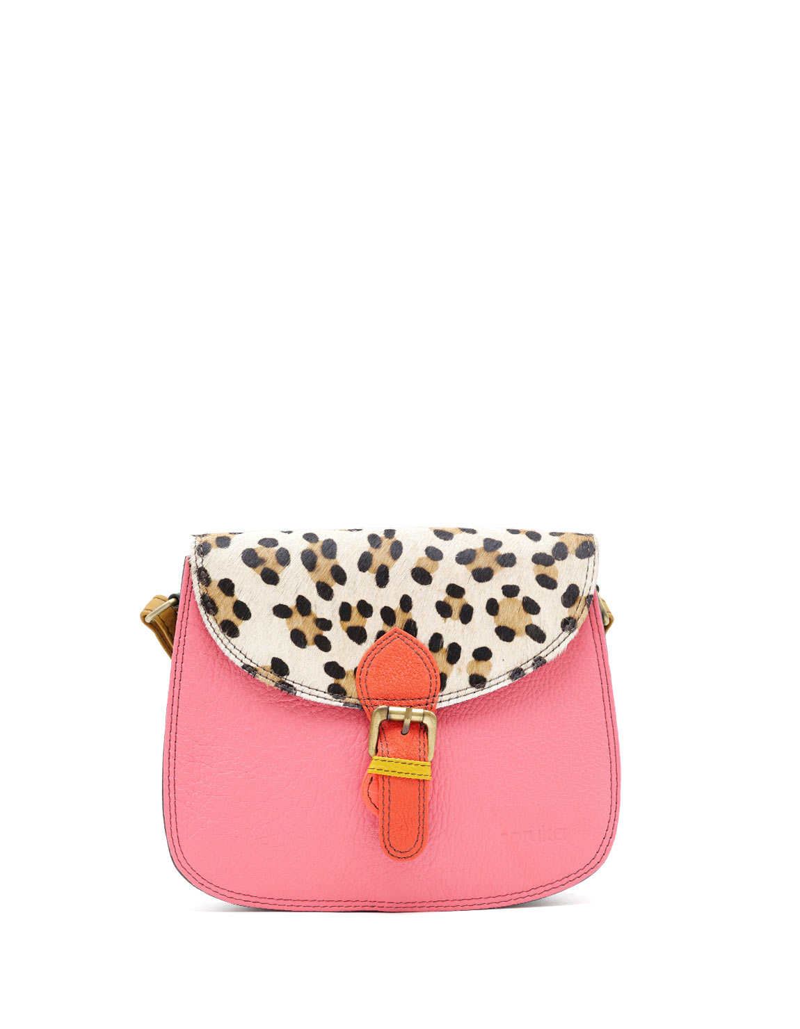 Stay stylish and organized with this handcrafted recycled leather crossbody bag, designed for maximum functionality, in Shades of Pink and Animal Print. With three separate compartments, it keeps your essentials neatly sorted while adding a touch of sustainable fashion to your outfit.
