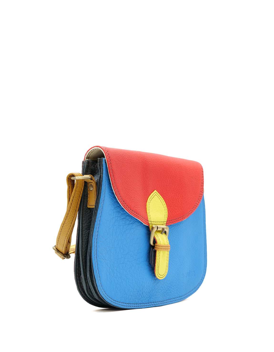 Stay stylish and organized with this handcrafted recycled leather crossbody bag, designed for maximum functionality, in Shades of Blue and Red. With three separate compartments, it keeps your essentials neatly sorted while adding a touch of sustainable fashion to your outfit.