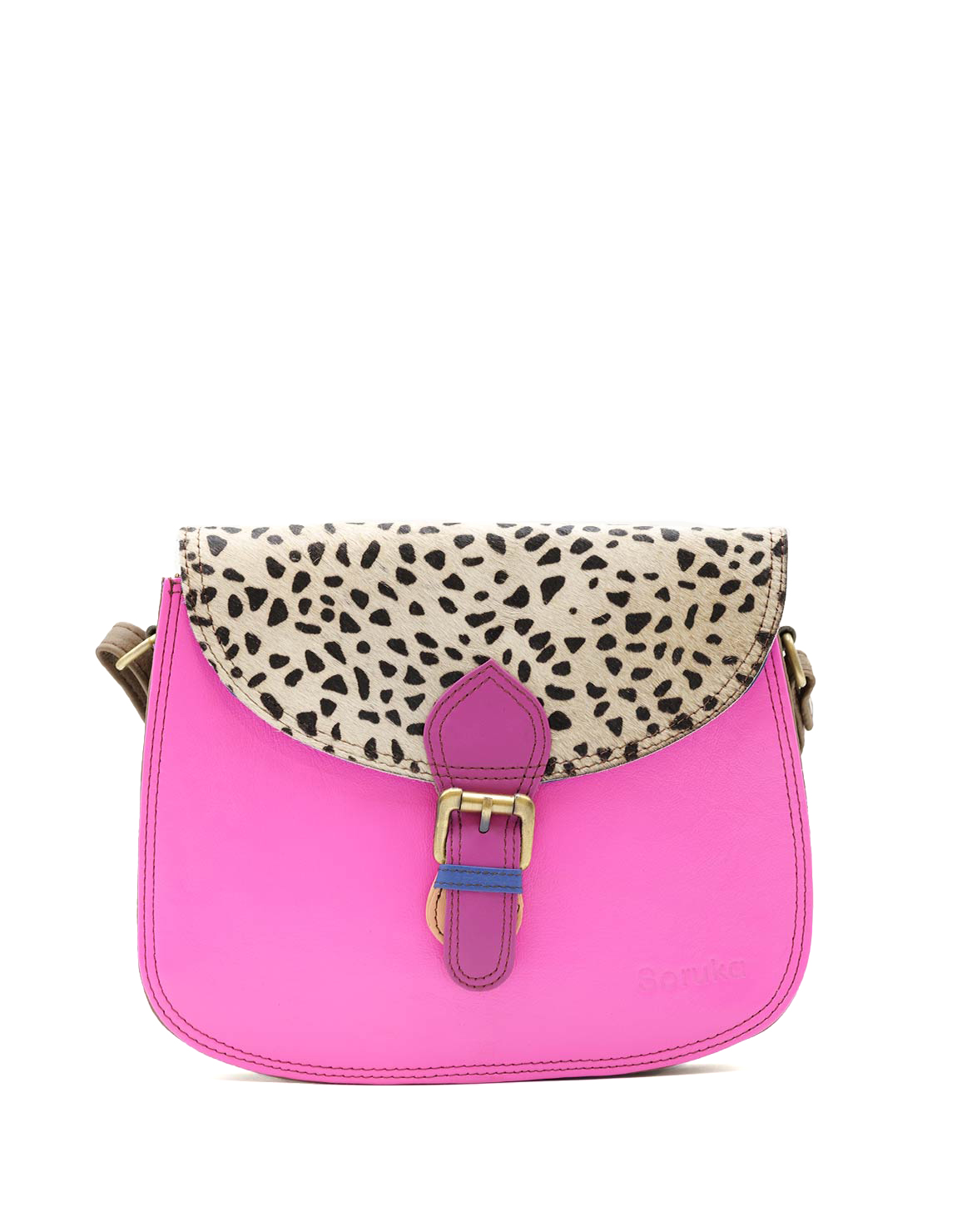 Stay stylish and organized with this handcrafted recycled leather crossbody bag, designed for maximum functionality, in Shades of Pink and Animal Print. With three separate compartments, it keeps your essentials neatly sorted while adding a touch of sustainable fashion to your outfit.