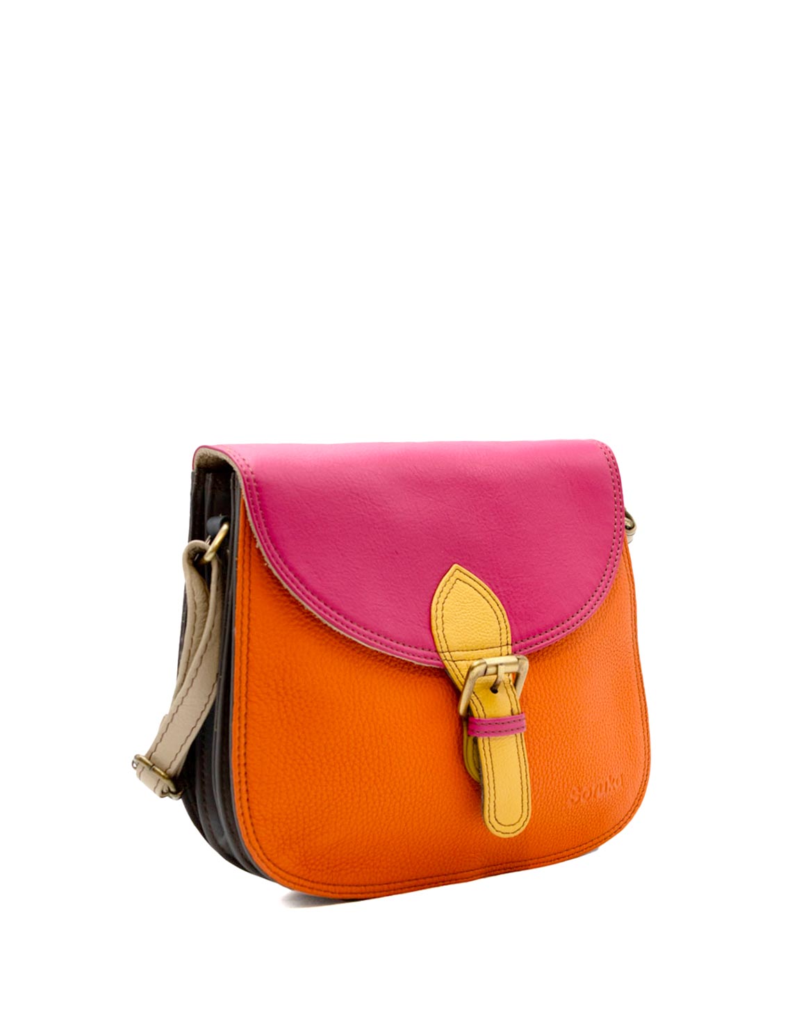 Stay stylish and organized with this handcrafted recycled leather crossbody bag, designed for maximum functionality, in Shades of Orange and Pink. With three separate compartments, it keeps your essentials neatly sorted while adding a touch of sustainable fashion to your outfit.