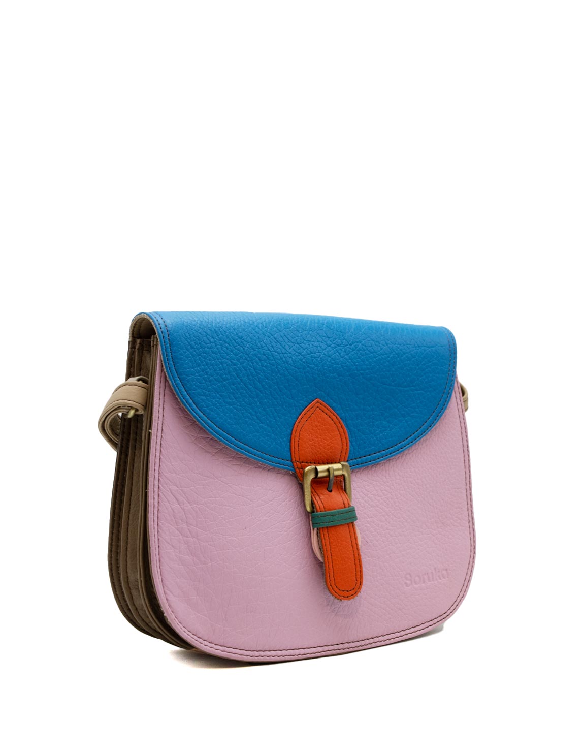 Stay stylish and organized with this handcrafted recycled leather crossbody bag, designed for maximum functionality, in Shades of Blue and Pink. With three separate compartments, it keeps your essentials neatly sorted while adding a touch of sustainable fashion to your outfit.