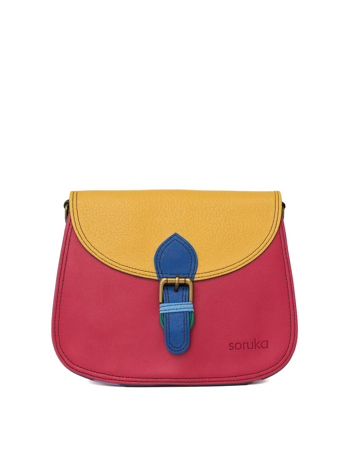 Stay stylish and organized with this handcrafted recycled leather crossbody bag, designed for maximum functionality, in Shades of Pink and Yellow. With three separate compartments, it keeps your essentials neatly sorted while adding a touch of sustainable fashion to your outfit.