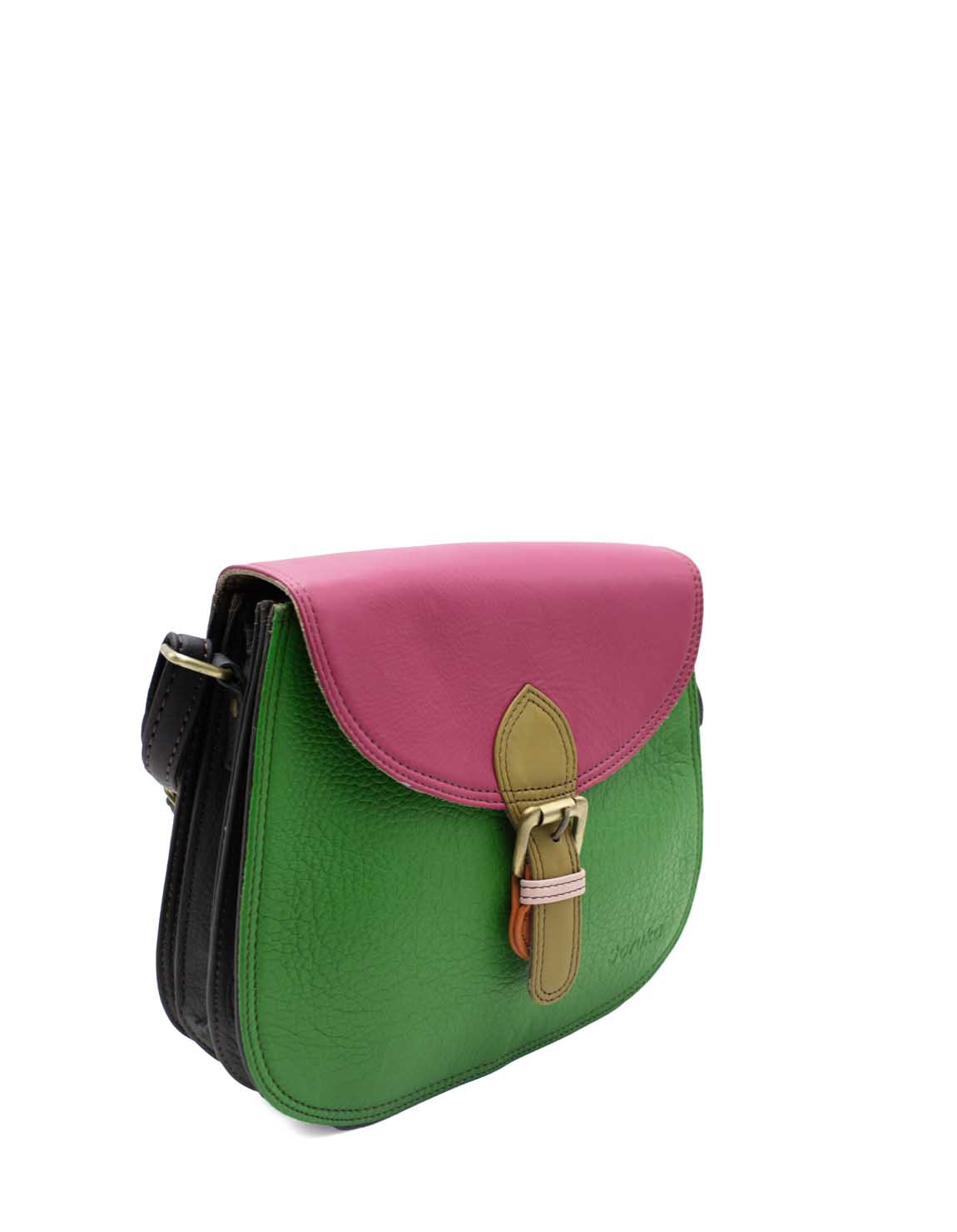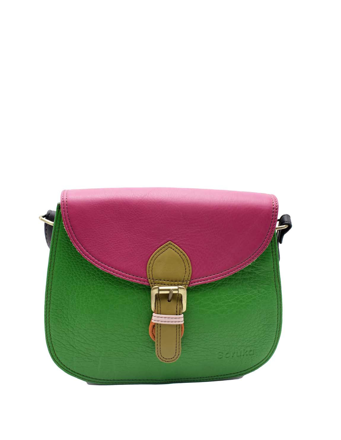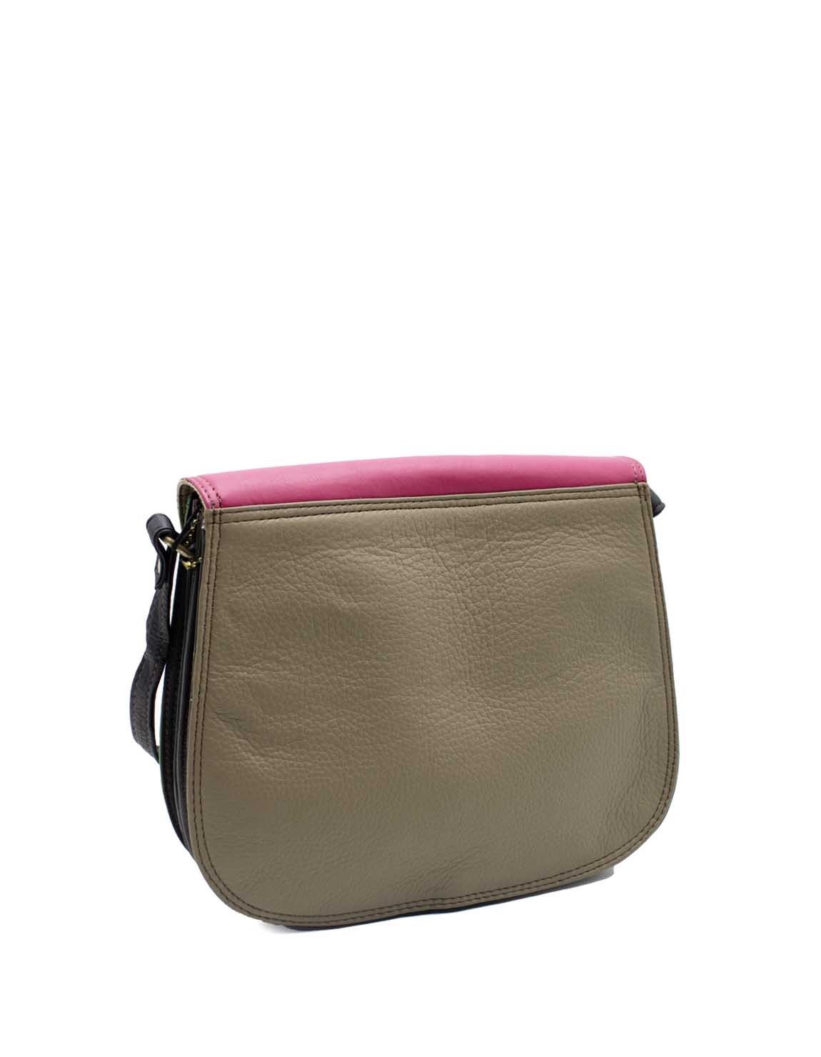 Stay stylish and organized with this handcrafted recycled leather crossbody bag, designed for maximum functionality, in Shades of Pink and Dark Green. With three separate compartments, it keeps your essentials neatly sorted while adding a touch of sustainable fashion to your outfit.