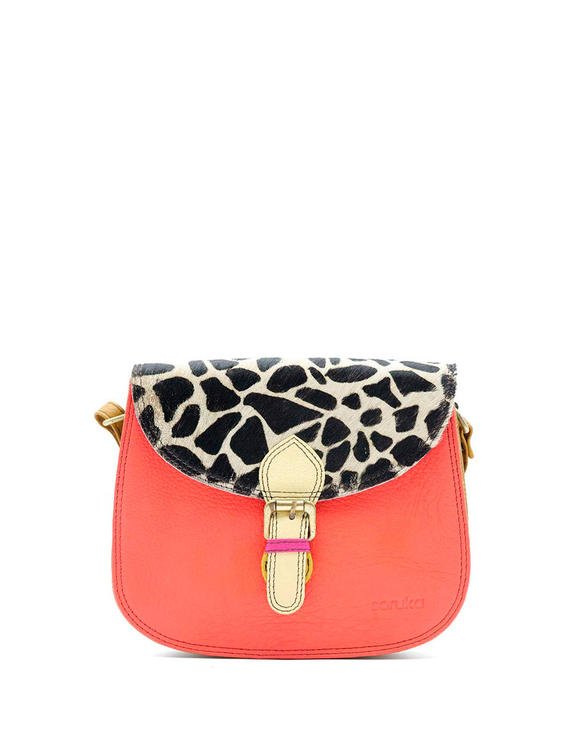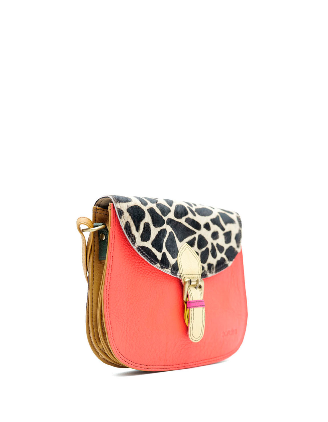 Stay stylish and organized with this handcrafted recycled leather crossbody bag, designed for maximum functionality, in Shades of Salmon and Animal Print. With three separate compartments, it keeps your essentials neatly sorted while adding a touch of sustainable fashion to your outfit.
