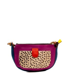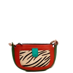 Colorful Leather Shoulder Bag · Animal Print Detail · Medium Shoulder Bag · Sustainable Leather Handbag · Statement Fashion Bag · Round Purse