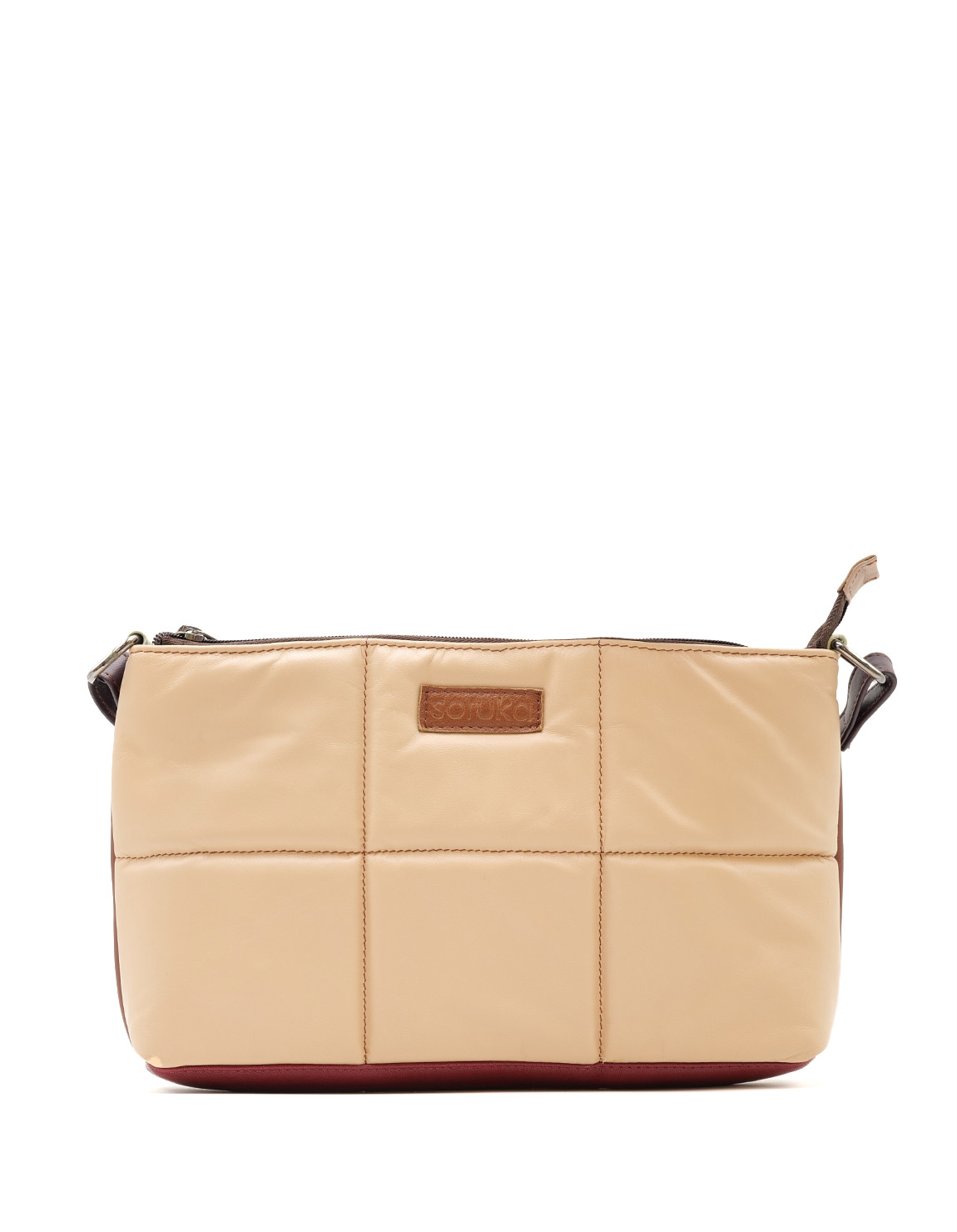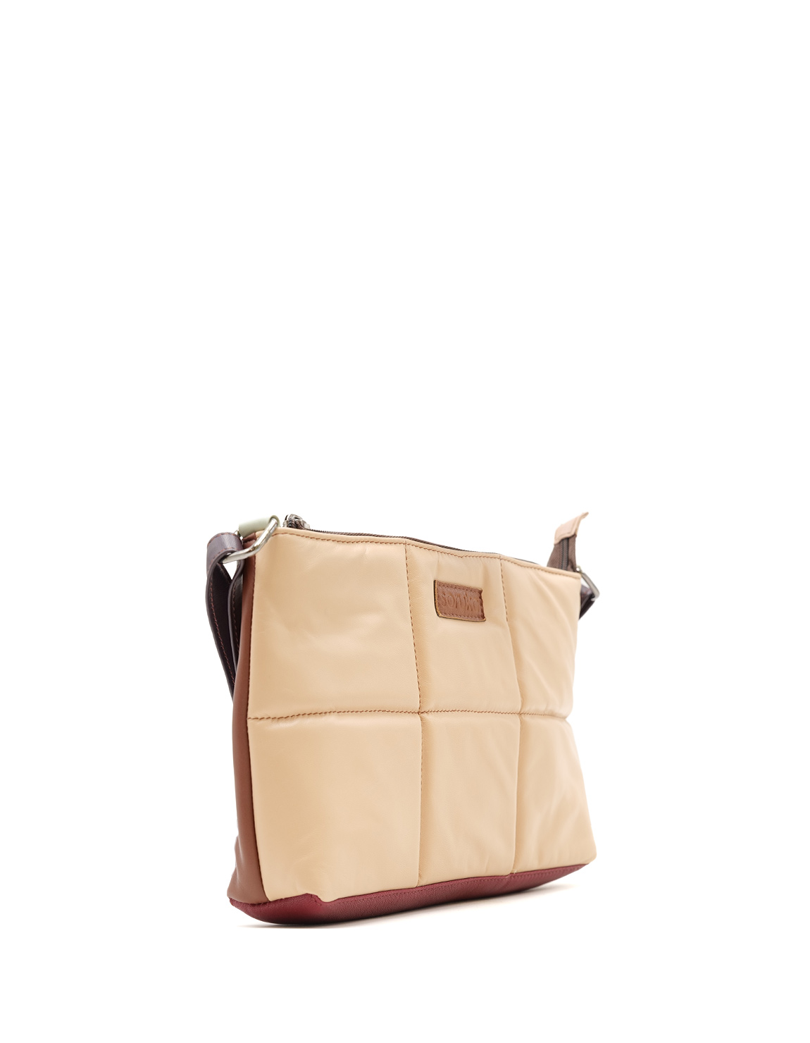 Beautiful 100% recycled leather quilted crossbody bag that will make a statement when you wear it and add a touch of glamour to your look. Eco-friendly handcrafted rectangular bag in shades of Beige and Brown.