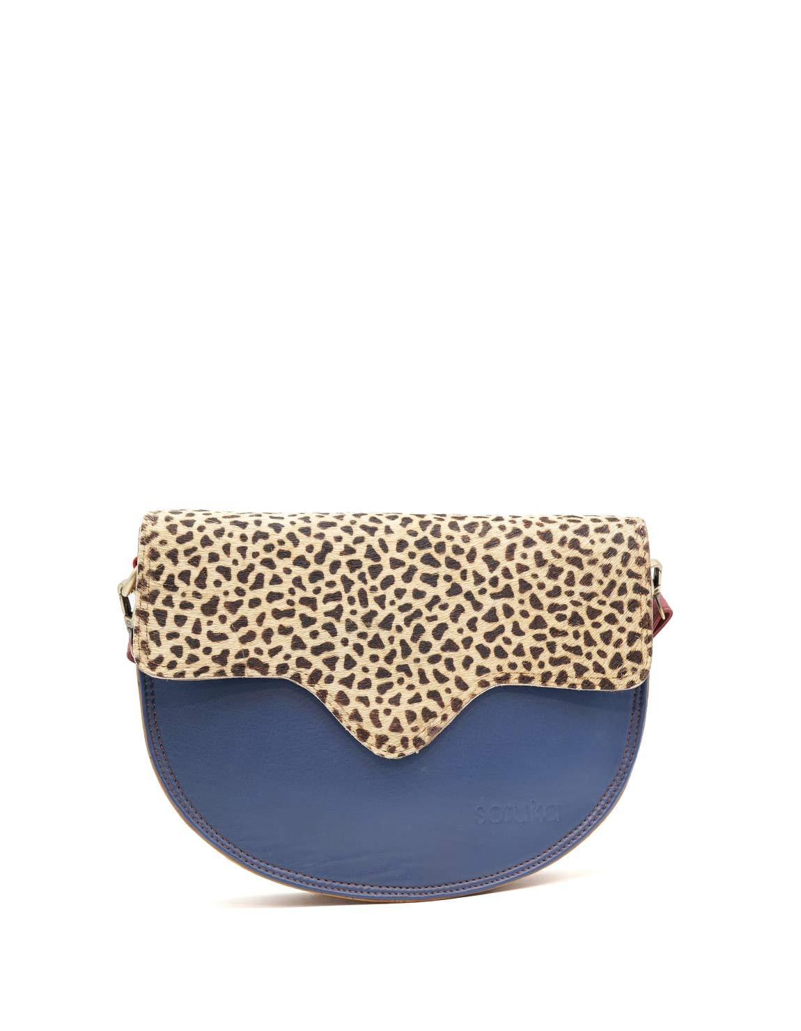 Beautiful 100% Recycled Leather Crossbody Bag in shades of Dark Blue. Eco-friendly Handmade Crossbody Bag. Adjustable shoulder strap also in leather.