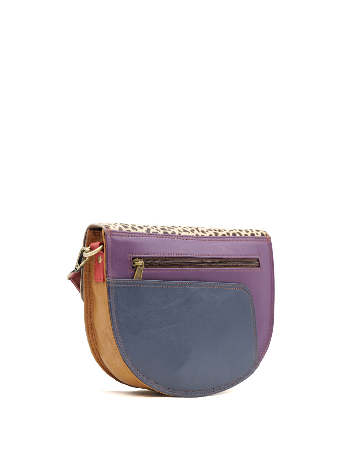 Colorful Leather Bag · Recycled Leather Purse · Medium Crossbody Handbag · Shoulder Strap Bag · Saddle Bag · Round Handbag