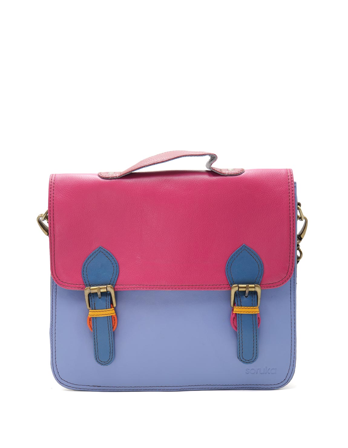 This colorful satchel bag will make a statement when you wear it. Perfect size to carry all your essentials, including a tablet, notebook and also compact laptop.