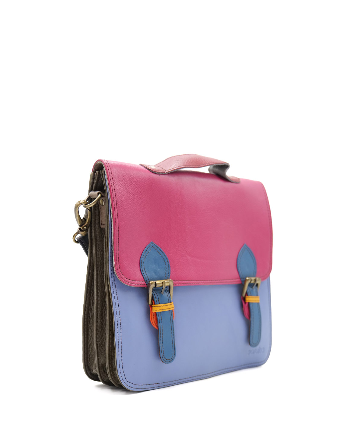 100% Recycled Leather Briefcase in shades of Purple and Pink. Beautiful Eco-friendly Handmade Messenger Bag with Top Handle.