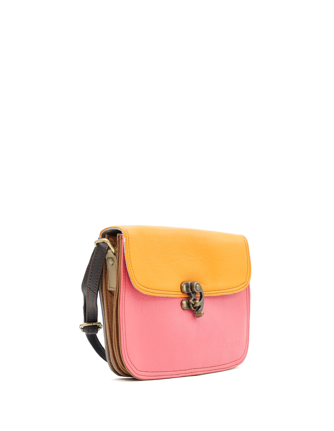 This colorful medium saddle-shaped bag is unique and compliments all types of looks. Ideal size to store all your essentials! The bag comes with an adjustable long strap so it can be worn as a shoulder bag or crossbody. The purse comes with three internal compartments, one with a zipper, and an additional pocket zipper inside the main compartment. It fastens a unique buckle.