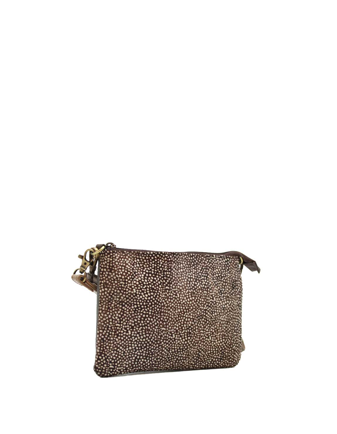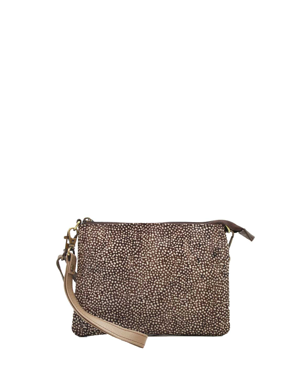 Beautiful 100% Recycled Leather Crossbody Bag & Clutch with Additional Wristlet Strap. Petite Eco friendly Handmade Bag with Hair-On Animal Print.