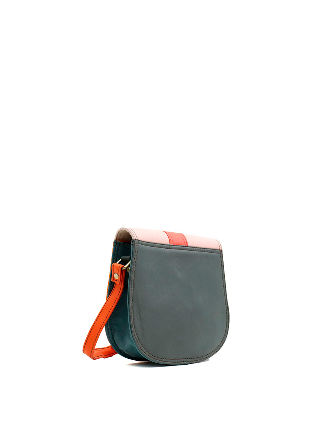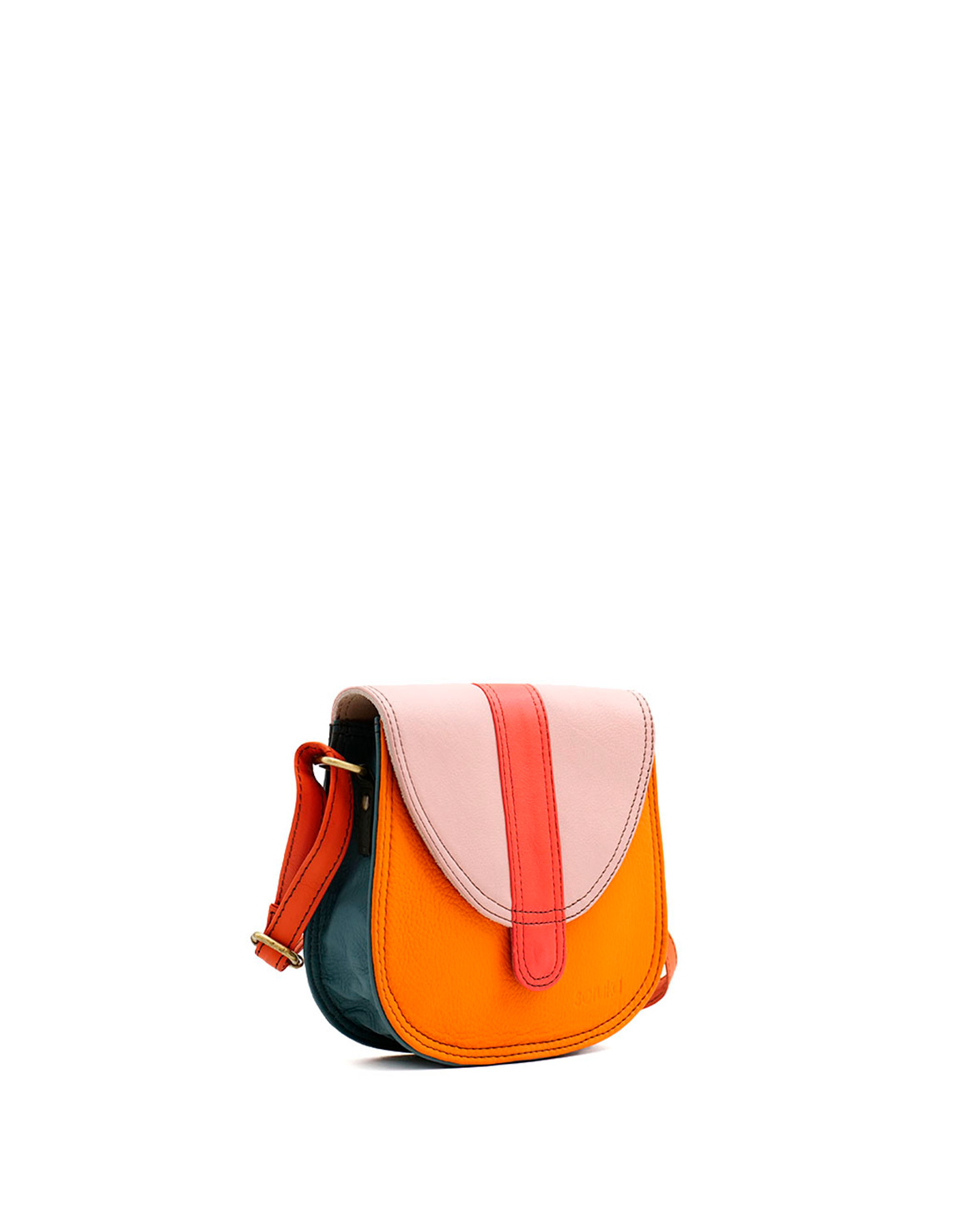 This colorful small saddle-shaped bag is unique and compliments all types of looks. The bag comes with an adjustable long strap so it can be worn as a shoulder bag or crossbody. It fastens with a magnetic stud beneath the buckle. Additional pocket zipper inside the main compartment.