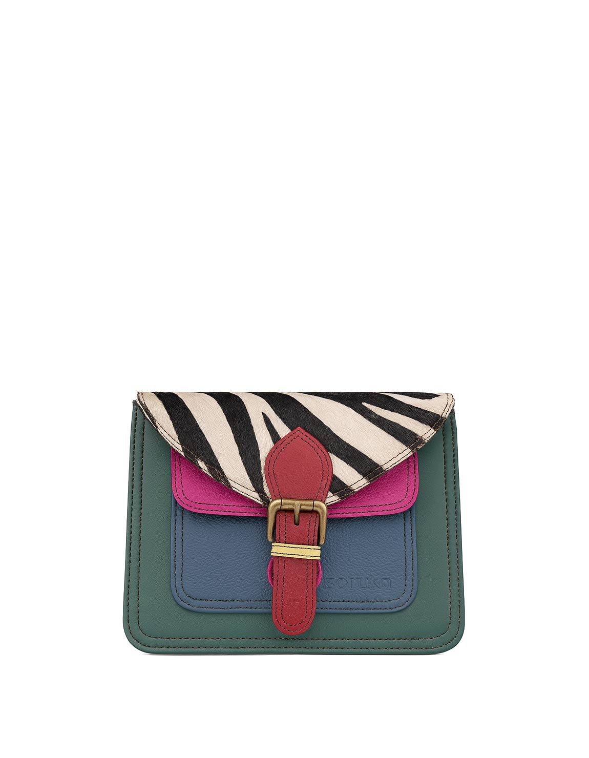 This colorful small envelope-shaped bag is unique and complements all types of looks. Perfect size to store all your essentials! It comes with one main compartment and a small front compartment with a magnetic stud. Additional zipper pocket inside the main compartment,