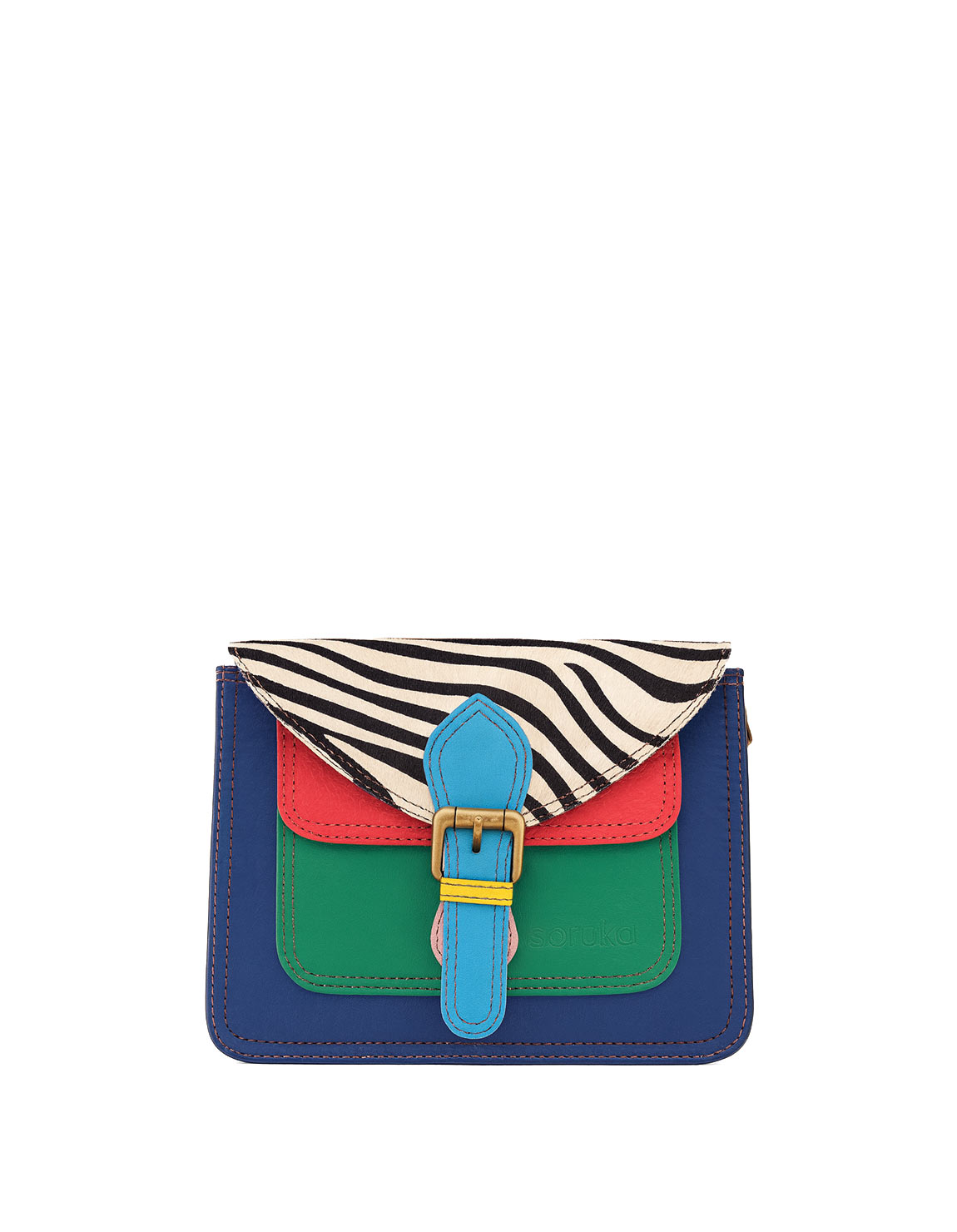 This colorful small envelope-shaped bag is unique and complements all types of looks. Perfect size to store all your essentials! It comes with one main compartment and a small front compartment with a magnetic stud. Additional zipper pocket inside the main compartment,